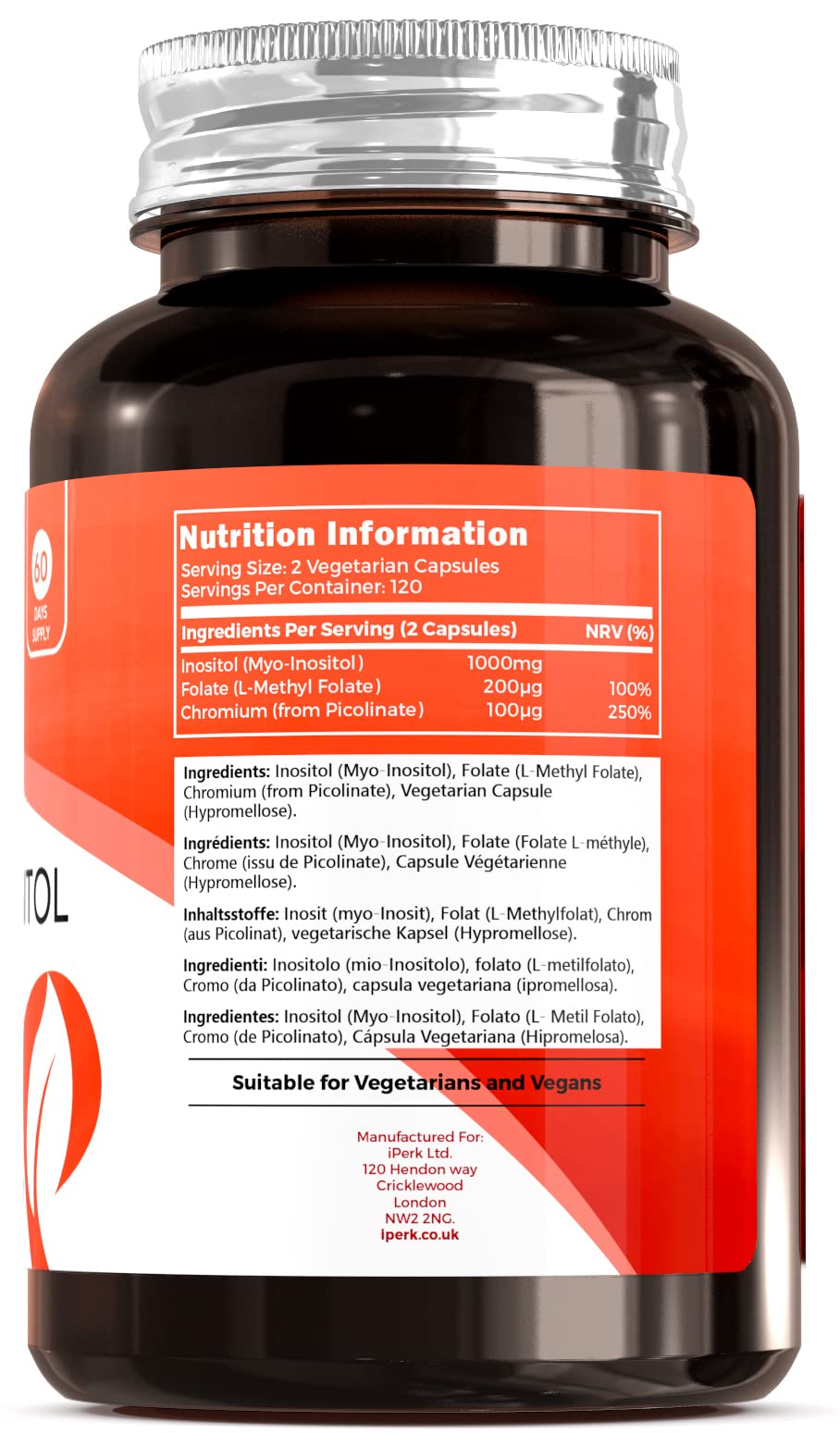 iperk Iperk Myo Inositol Chromium and Folate 1000mg Inositol Per Serving 120 Vegan Capsules Vitamin for Women Manufactured in The UK CERTIFICATED GMP