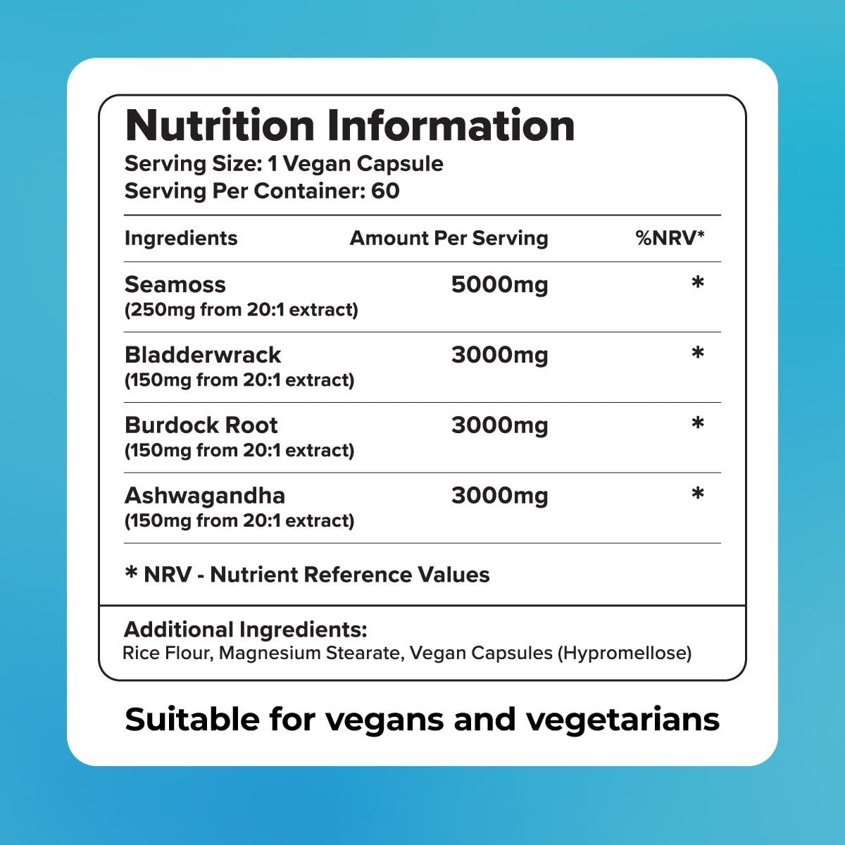 iperk iPerk Sea Moss Complex: Bladderwrack, Burdock & Ashwagandha - 14,000mg High Potency Formula - 60 Vegan Capsules - UK Manufactured
