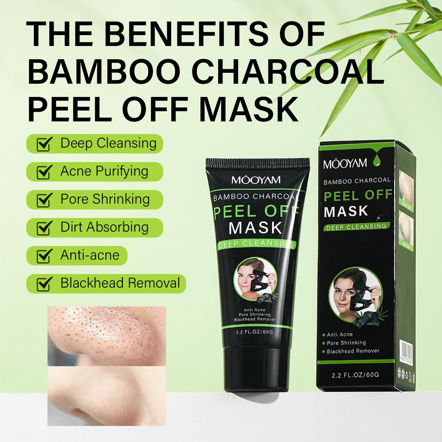 IREV Bamboo Charcoal Peel Off Mask, Blackhead Remover Peel Off Mask Charcoal Face Masks for Deep Cleansing, Blackhead Peel Off Mask for Smooth & Clear Skin Black Peel Off Face Mask Charcoal Face Mask