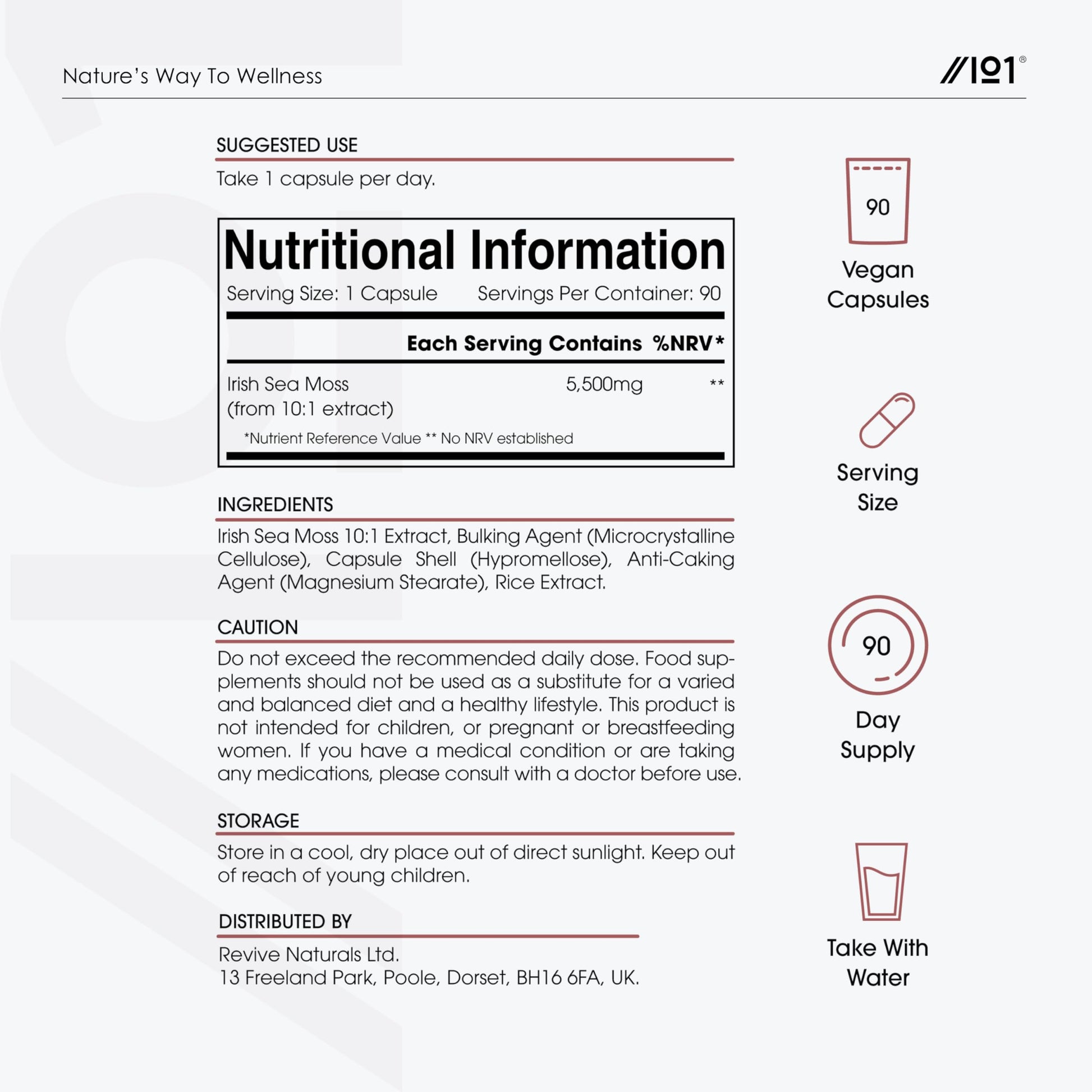 Irish Sea Moss Extract 5500mg - Rich in Trace Minerals High Strength 10:1 Extract - 90 Vegan Capsules (3 Month Supply) – by Alpha01®