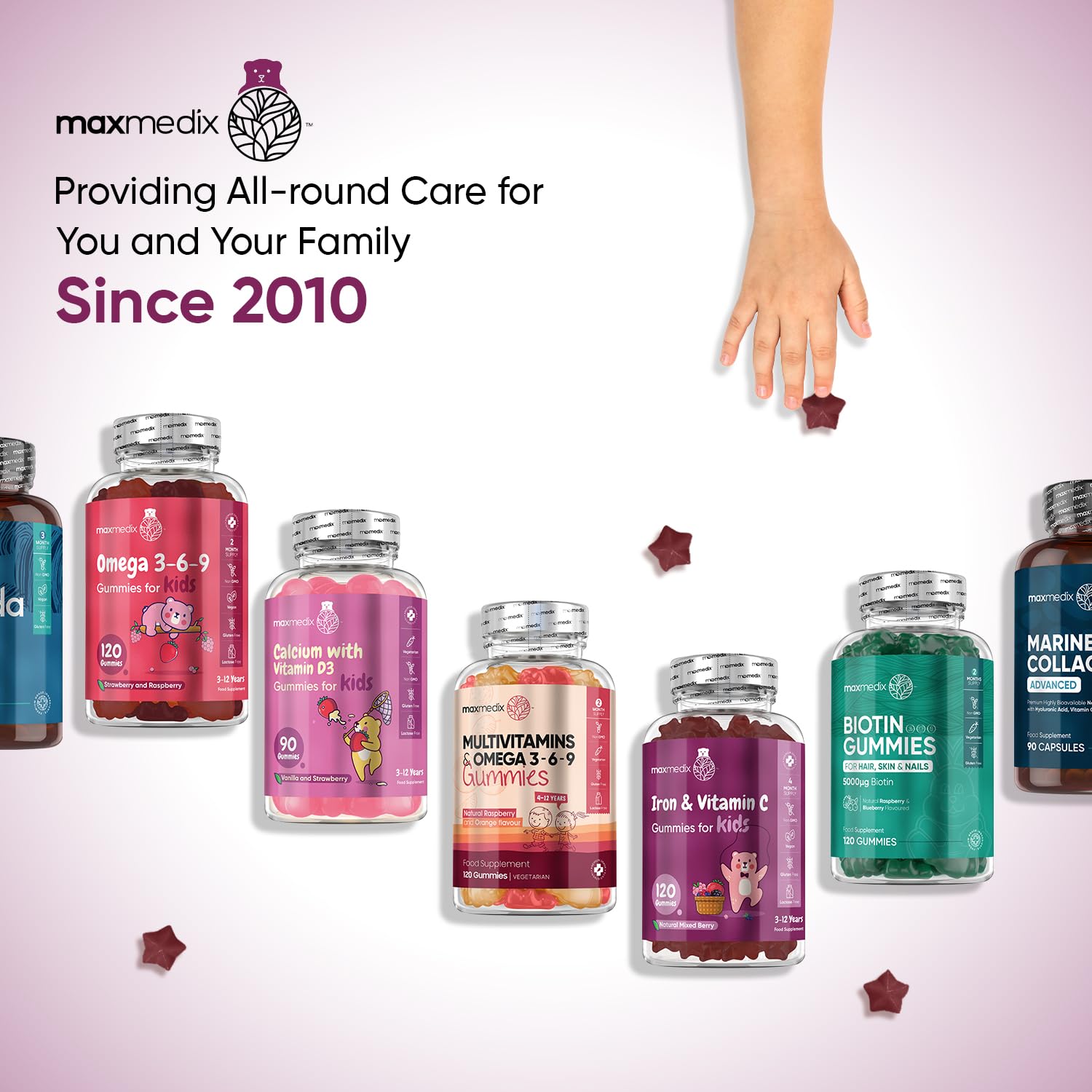 Our iron & vitamin C supplement for kids offers an adequate dosage of iron, an essential mineral for your little one's growth & development. Our iron gummies for kids are packed with an appropriate dosage of Vitamin C to increase the absorption of iron. You will find 120 kids vitamin C & iron gummies that will last for 4 whole months. Energize their Adventure with our kids vitamin C gummies. Elevate your kid's immunity and energy levels with our Kids immune system supplements. Iron contributes to the normal formation of red blood cells & haemoglobin and cognitive development of children. Iron also has a role in the process of cell division. Vitamin C contributes to normal collagen formation for the normal function of bones, cartilage, gums, skin, and teeth. Vitamin C contributes to normal psychological function. Iron & Vitamin C contribute to the reduction of tiredness and fatigue as well as normal energy-yielding metabolism. (EFSA Approved Claims). If your young superstar is not able to get enough Iron & Vitamin C from their diet, then our iron and vitamin C gummies for kids are a suitable choice.Our Vitamin C and Iron kids gummies offer a delicious, natural mixed berry flavour that will surely delight your child's taste buds. Our iron chewable gummies for kids are perfect for those who find it hard to swallow iron capsules or iron tablets for kids. Just give your child one Vitamin C & iron gummy daily to energise their adventures. You will not find a trace of gluten & lactose in our Kids Vitamin C & Iron Gummies, making them suitable for kids with dietary restrictions. Offering iron in a highly bioavailable form (Ferrous Fumarate), our child vitamin & iron gummies are easily absorbed by kids. Moreover, our immune system supplements kids are vegan-friendly.More Info