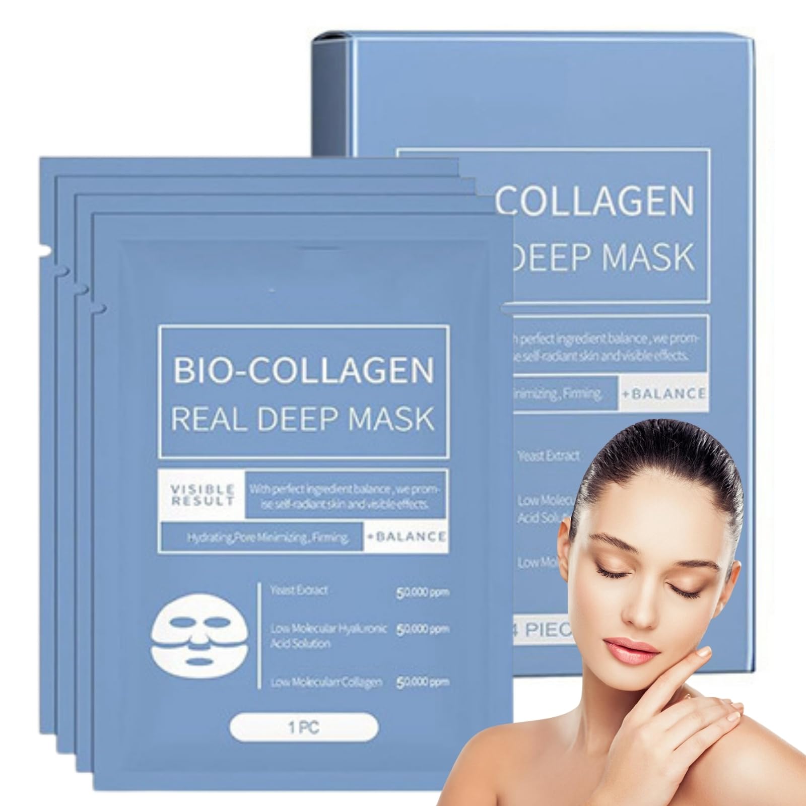 With the 4PCS Bio Collagen Mask, achieve deeply hydrated, firm, and radiant skin easily. Improve your skin to the luxurious skin care it deserves and enjoy a more youthful, glowing complexion.
