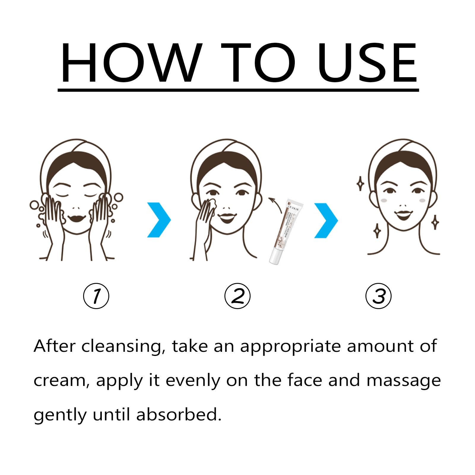 Gently massage face cream daily into your face, press the face with your fingertips to help absorption, avoiding the area around the eyes. It is recommended to use it every morning and evening for better results.
