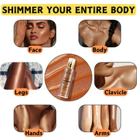 Our body shimmer oil delivers a radiant glow with a lightweight formula that's perfect for both face and body. Enriched with nourishing ingredients, it provides hydration while enhancing your natural beauty. Ideal for parties,dates and outdoor events
