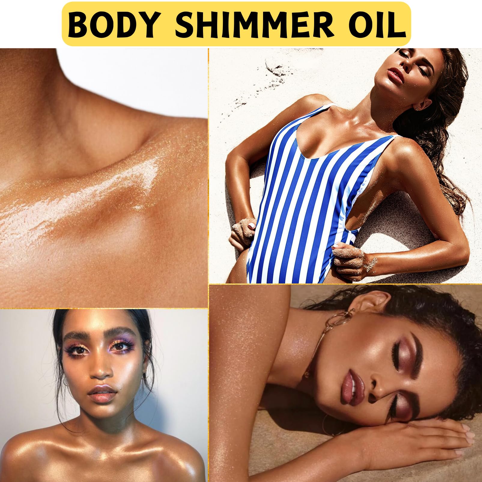ISBEAUSOLS Golden Copper Body Shimmer Oil, Body Oil for Women, Body Luminizer&Glows&Brightening, Body Oils for Body Glow, Body Care for Face&Body, Shimmer and Shine Your Skin, Gift for Women