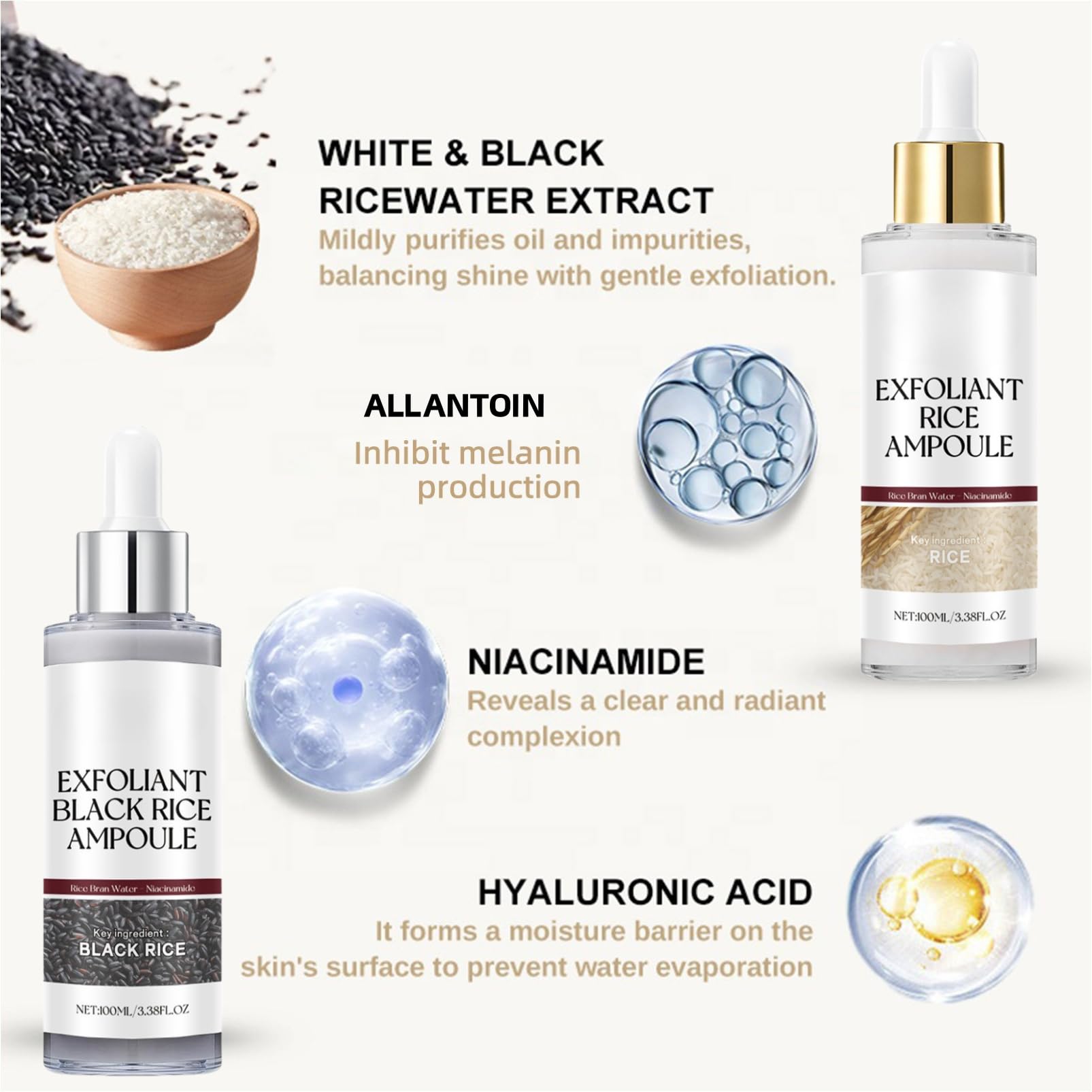 ISBEAUSOLS Peel Shot Glow Rice Ampoule Duo, White Rice + Black Rice Ampoule, Exfoliating Face Scrub for Women, Gentle Facial Cleanser with Rice Water & Niacinamide,Anti-Aging Dead Skin Remover (White,100ml)