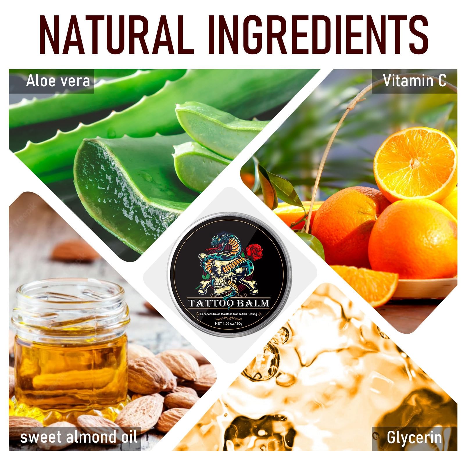 TATTOO BUTTER: ★ Tattoo Aftercare Helps Heal & Prevents Fading ★ Specially formulated for usage before, during and after the tattoo process. ★ Instantly enhances ink vibrancy as it forms a protective barrier on the skin that moisturizes. This cream also prevents fading and revives color in older tattoos. ★ Made using only natural ingredients, cruelty free, paraben free and petroleum free. ★ Can be used for: Tattoo before/during/after care, moisturizer, sunburns, minor cuts, scars, beard balm, diaper rash and dry skin. We recommend daily use for best results. Ingredients: ★ Butyrospermum Parkii (Shea Butter), Simmondsia Chinensis (Jojoba) Seed Oll, Helianthus Annuus (Sunflower) Seed Oil, Macadamia Ternifolia Seed Oll, Cera Alba, Tocopheryl Acetate. DIRECTIONS: ★ Use twice daily.More Info
