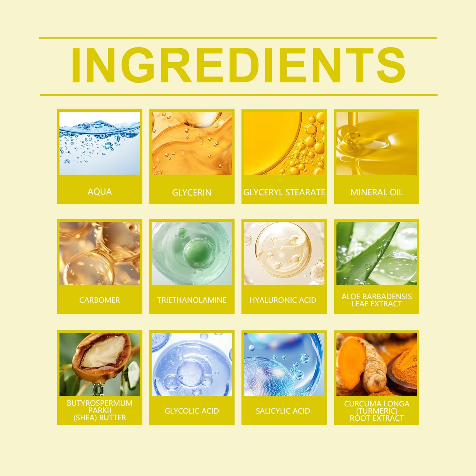 Brightening Face Cream infused with turmeric root extract and hyaluronic acid deeply hydrates while fading dark spots. Turmeric Glow Cream for Hyperpigmentation evens skin tone.