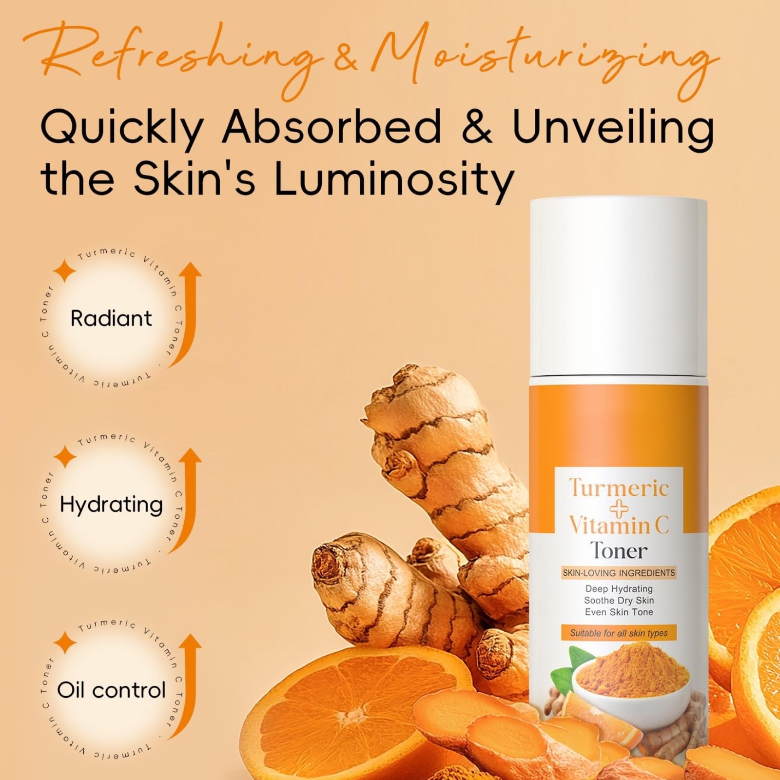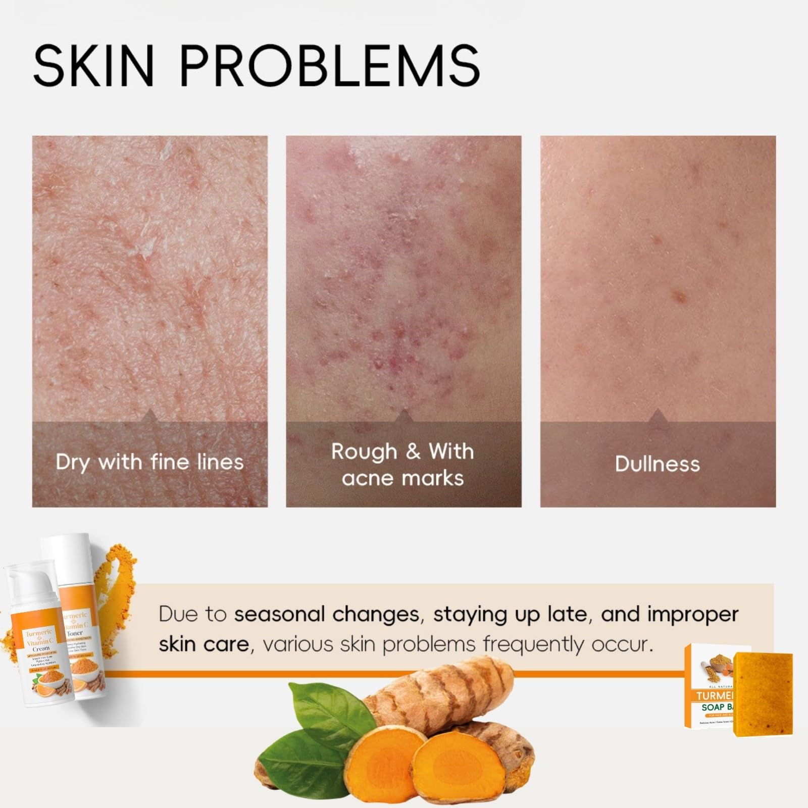 ISBEAUSOLS Turmeric Soap Bar Skin Care Set - Soap Bar with Face Toner & Face Cream - Natural Kojic Acid & Vitamin C - Dark Spot Remover for Even Skin Tone, Acne, Dark Spots - Deeply Hydrating & Firming (3pcs)