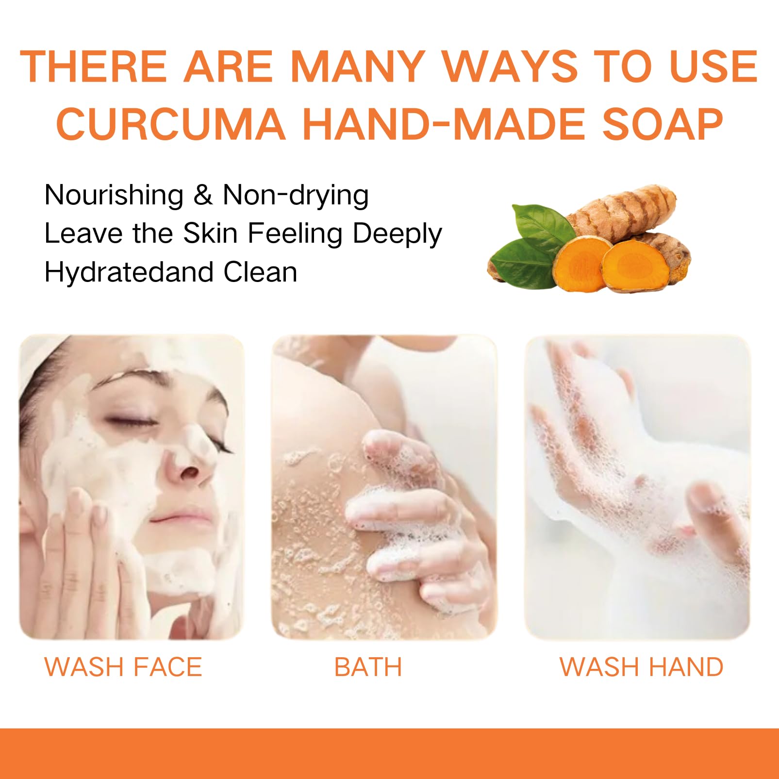 When taking a bath or washing your face, moisten the turmeric soap and gently rub it to lather, then apply it to the skin and massage for a while, and finally rinse it off with water.