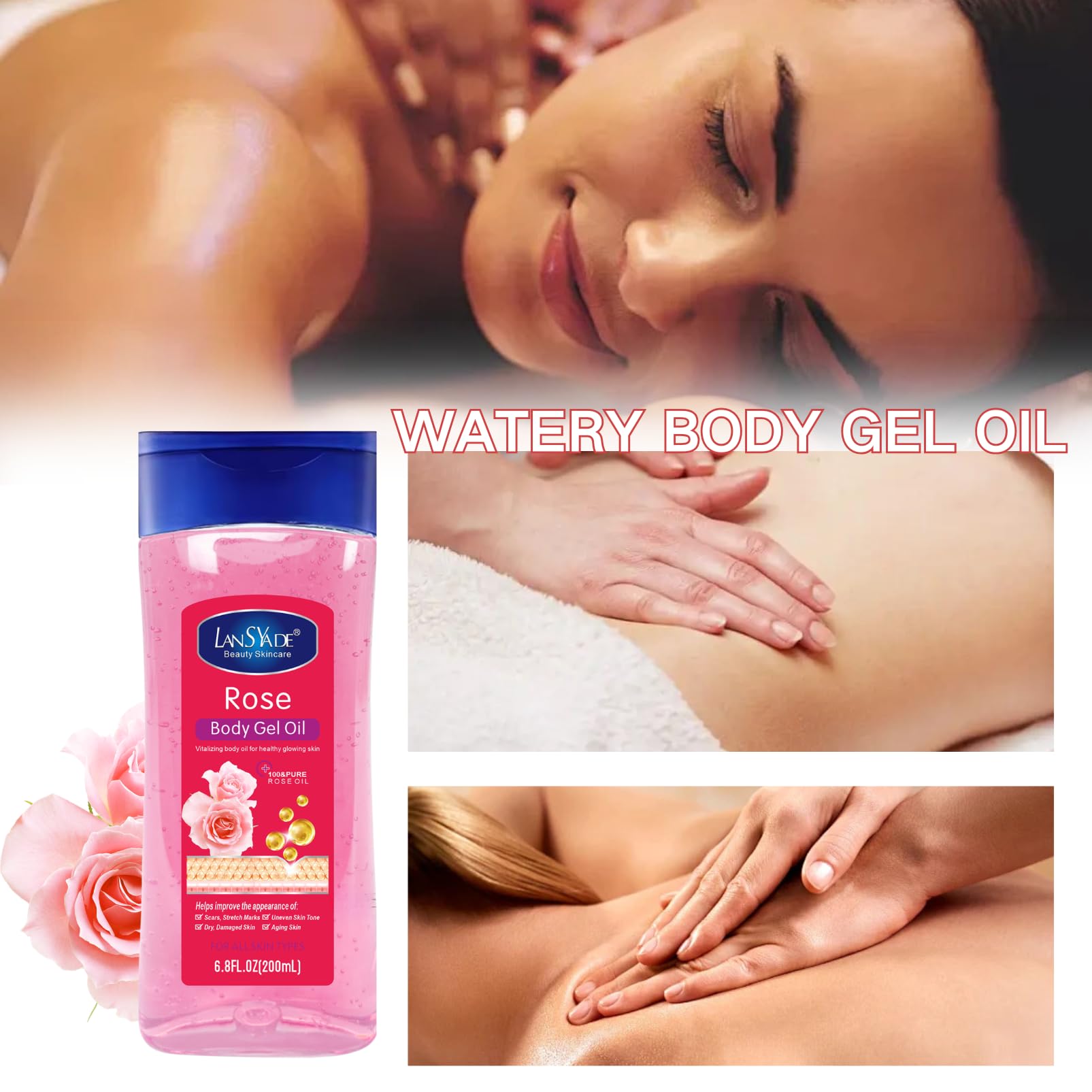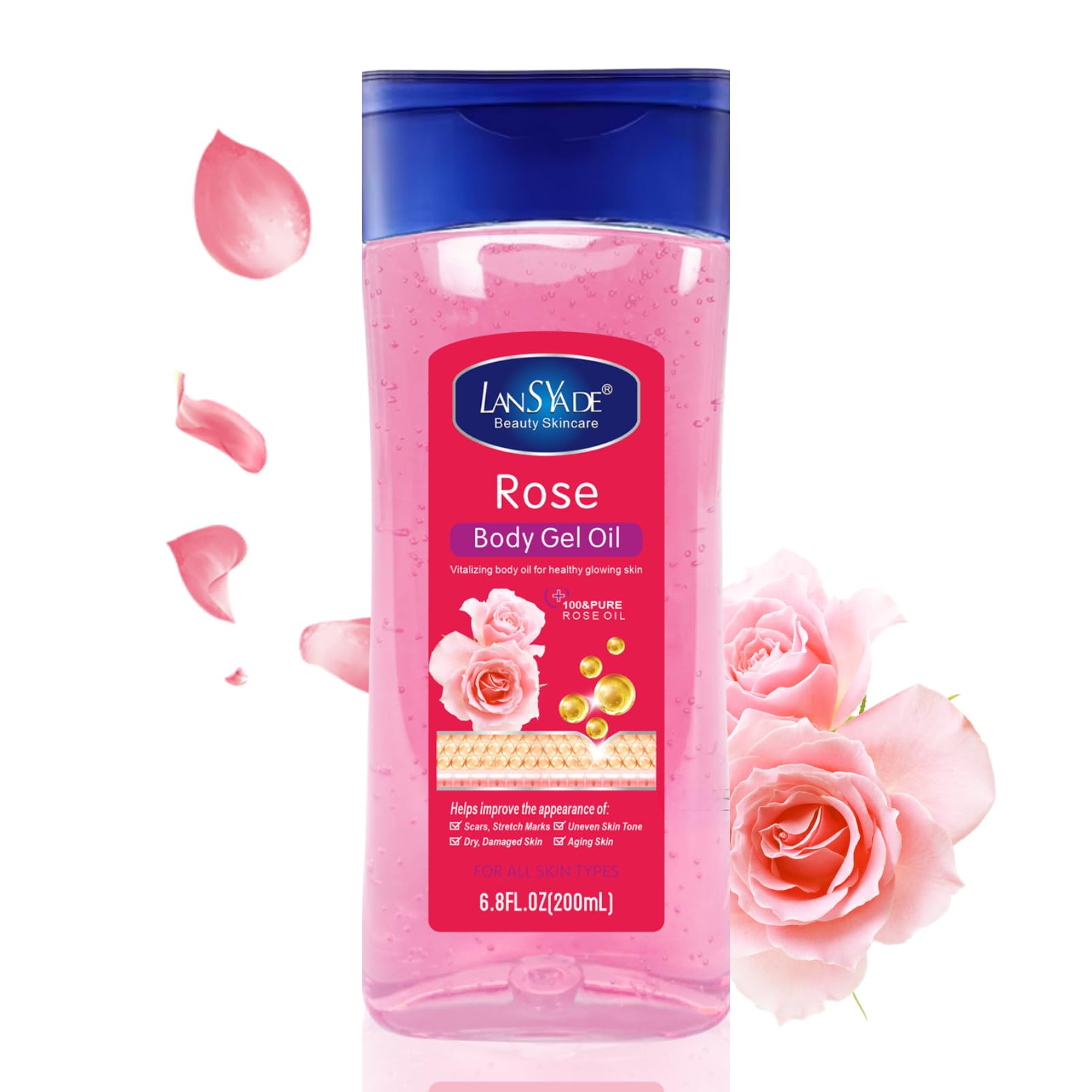 ISBEAUSOLS Vc Body Oil Gel - Body Oil for Women - Body Skin Care Oil Gel for Face,Body,Arm,Leg - Natural Vitamin C Essential Oils for Dry Skin - Hydrating Skin Care,Nourish,Watery Oil Texture (200ML, Rose)