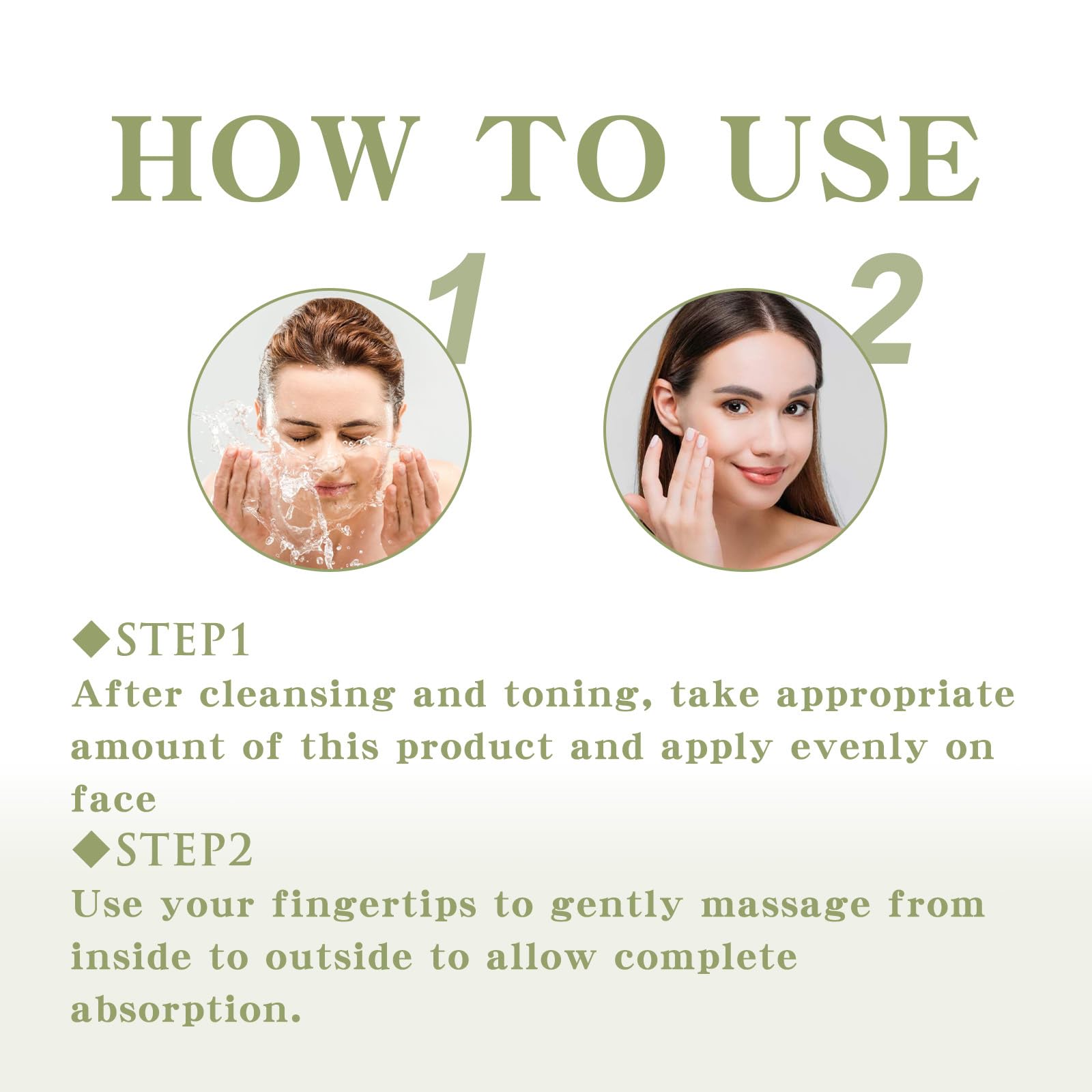 Step 1: After cleansing, take an approriate amount of skincare serum and rub it in the palm of your hand.