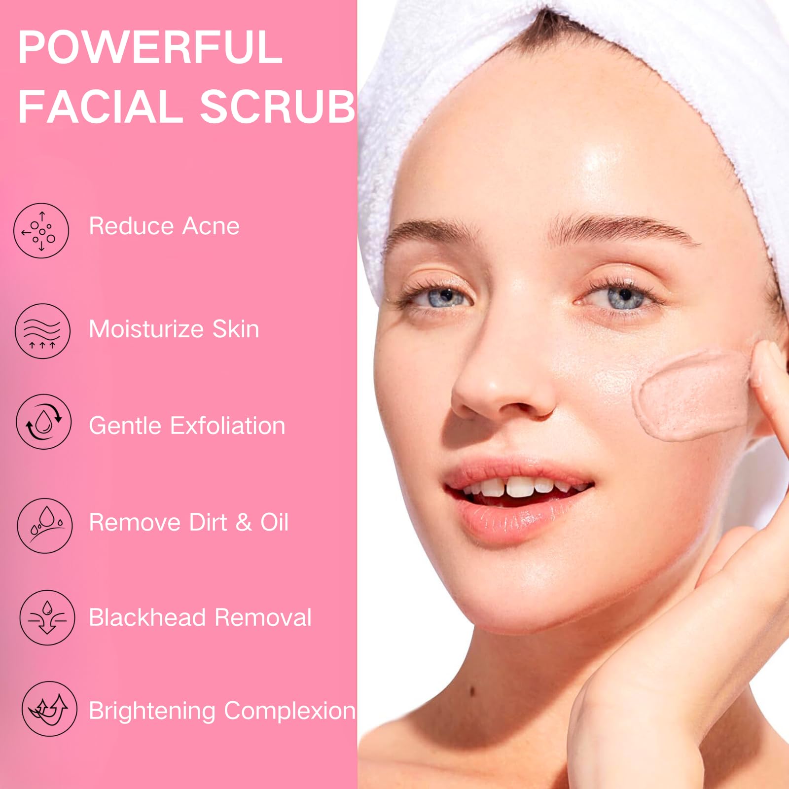 ③Rinse thoroughly with warm water and pat your face dry.Use 2-3 times per week for best results.