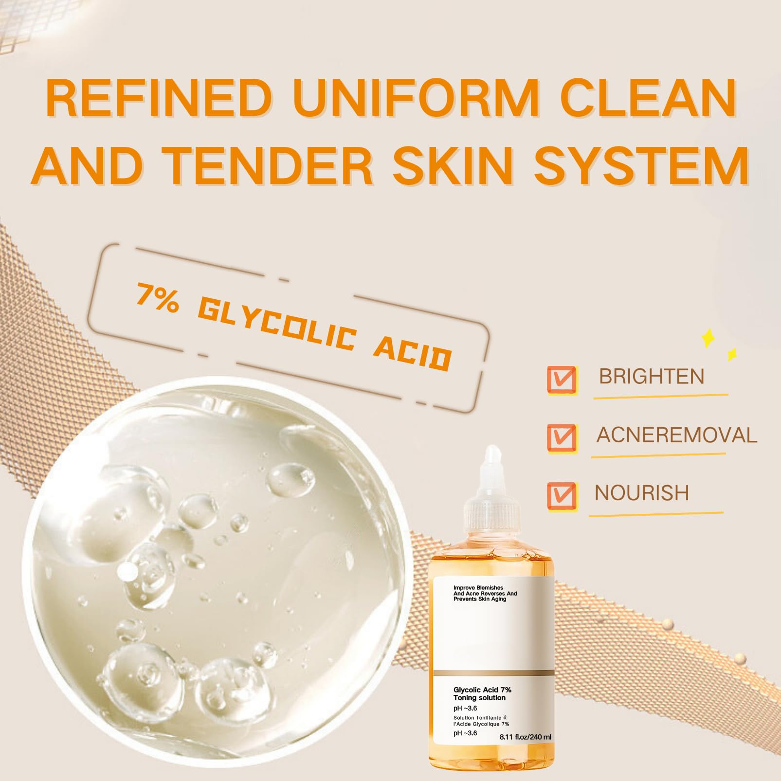 Glycolic acid 7% oil control and pore contraction fruit acid essence to bring you healthy, smooth and flawless skin.