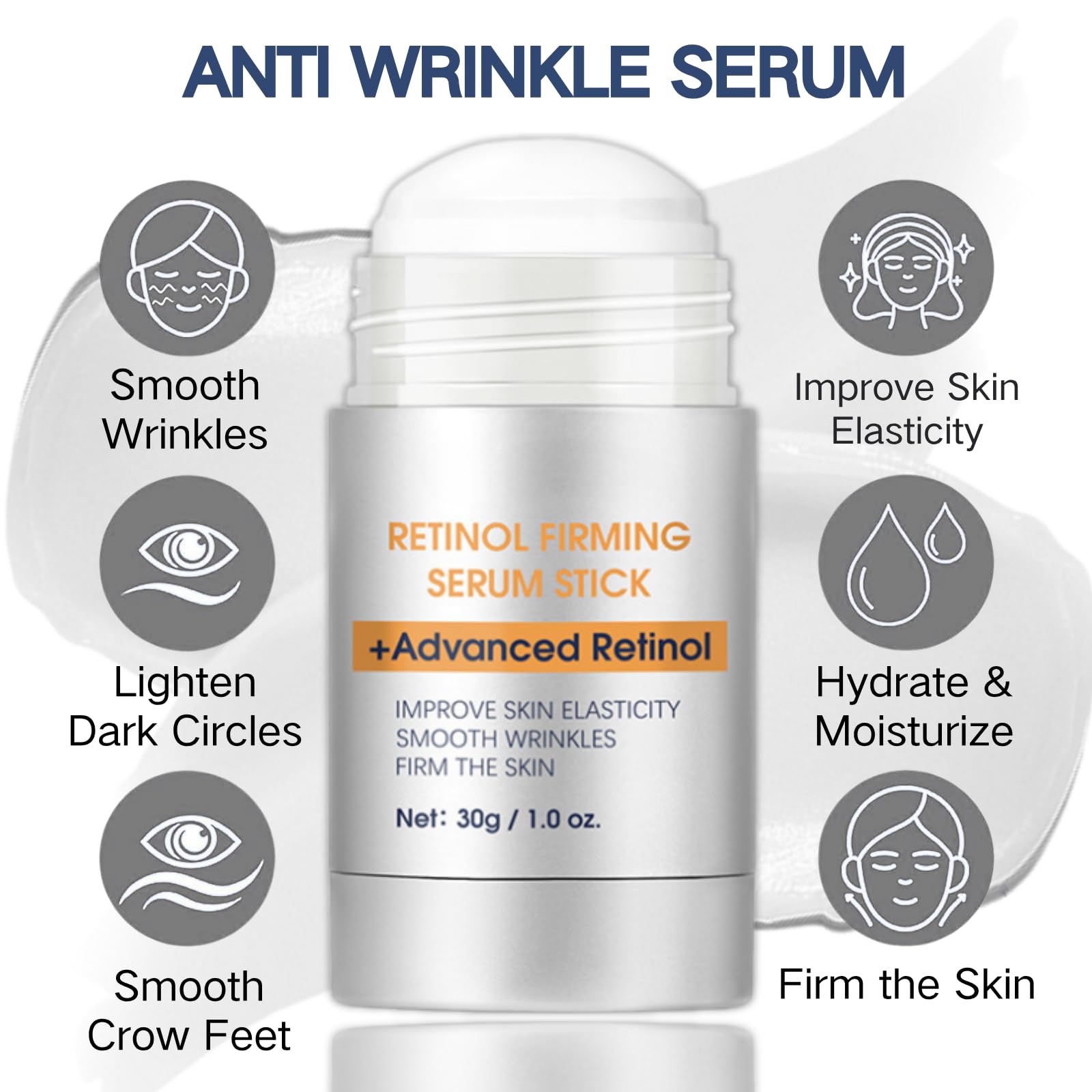 Product Introduction:Discover the ultimate solution for youthful, radiant skin with our Retinol Firming Serum Stick. Infused with Advanced Retinol and nourishing antioxidants, this portable anti wrinkle firming serum targets wrinkles, loss of elasticity, and uneven texture. Designed for eyes, face, and neck, its innovative stick format ensures precise, mess-free application, making it ideal for busy lifestyles or travel.