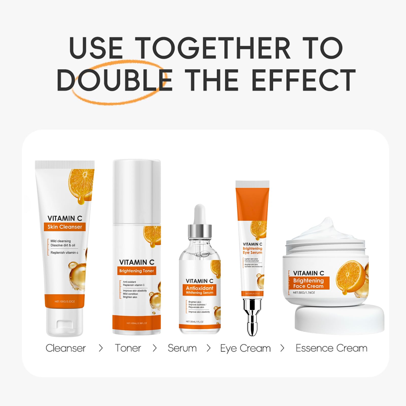 Our 5-piece beauty gift sets for her Skincare Routine contain ●Vitamin C Cleanser: Gently purifies and refreshes the skin.