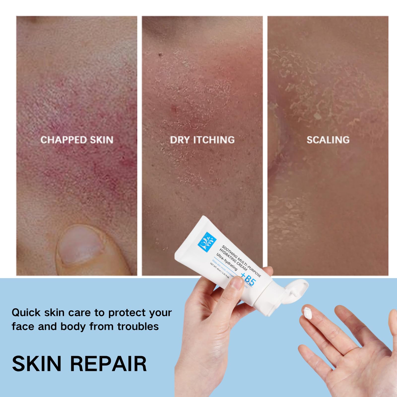Experience ultimate hydration with our multi-purpose hydrating cream, designed for dry and sensitive skin. Infused with B5 panthenol and centella asiatica, this daily moisturizer for face delivers deep moisture while calming irritation. Perfect for use on the face, hands, and body, it restores skin’s natural glow without clogging pores.
