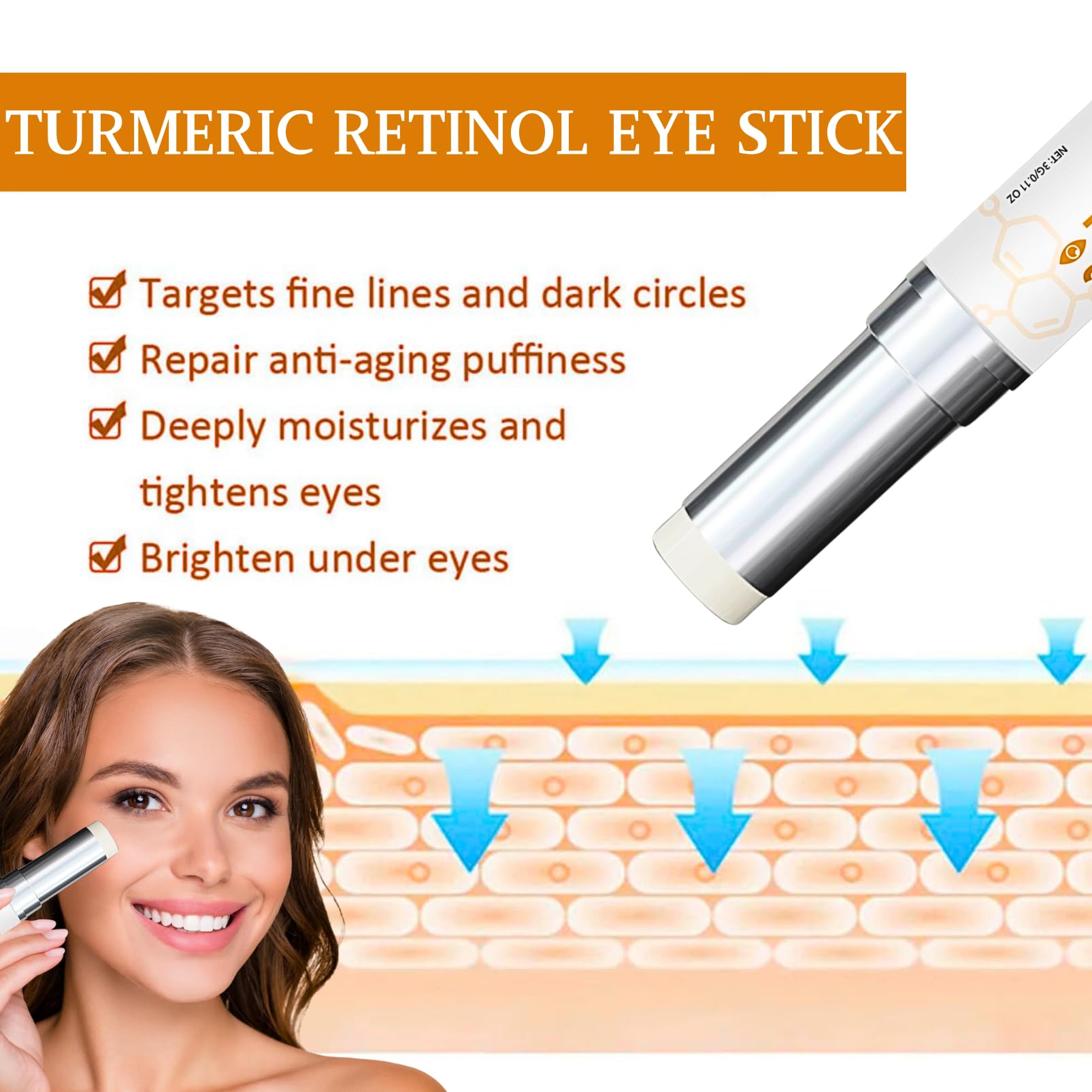 Discover exceptional care with our Retinol Turmeric Eye Stick. Say goodbye to wrinkles and welcome beautifully youthful eyes.Enriched with potent hydrating ingredients, this Turmeric Under Eye Cream Stick effectively addresses dark circles by deeply penetrating the skin to eliminate dryness and restore moisture, leaving your skin soft and supple. Our meticulously formulated eye repair cream is designed for both men and women to combat wrinkles and fine lines, providing an immediate tightening effect around the eyes for a fresher, brighter appearance.