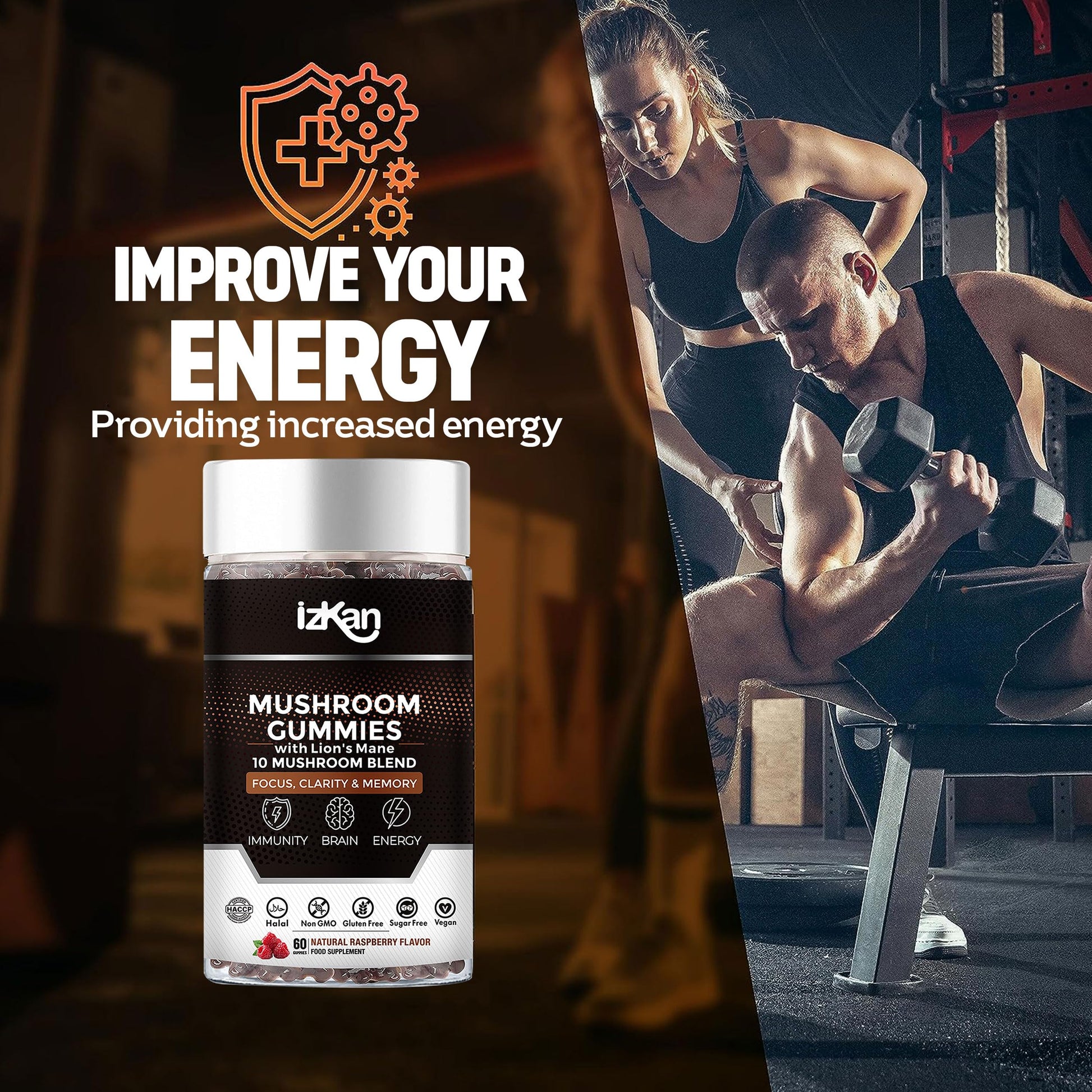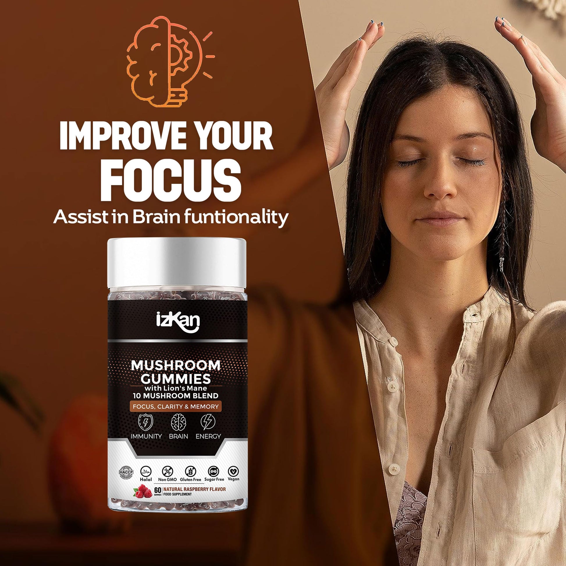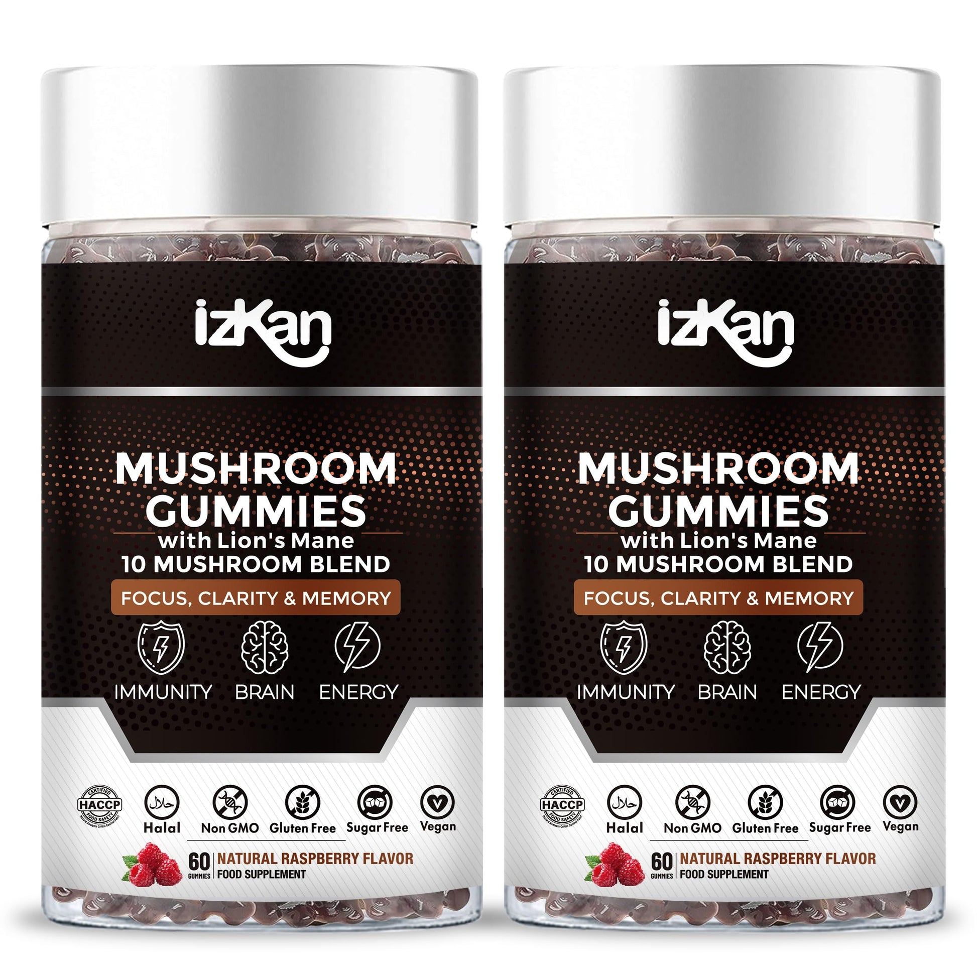 Izkan Mushroom Gummies Supplement 3000mg - 9 Mushrooms Gummies with Ashwagandha Supplement Promotes Nootropic Brain Supplement, Immune Support & Stress Relief - 60 Count (Halal, Gluten-Free, Vegan) (2)