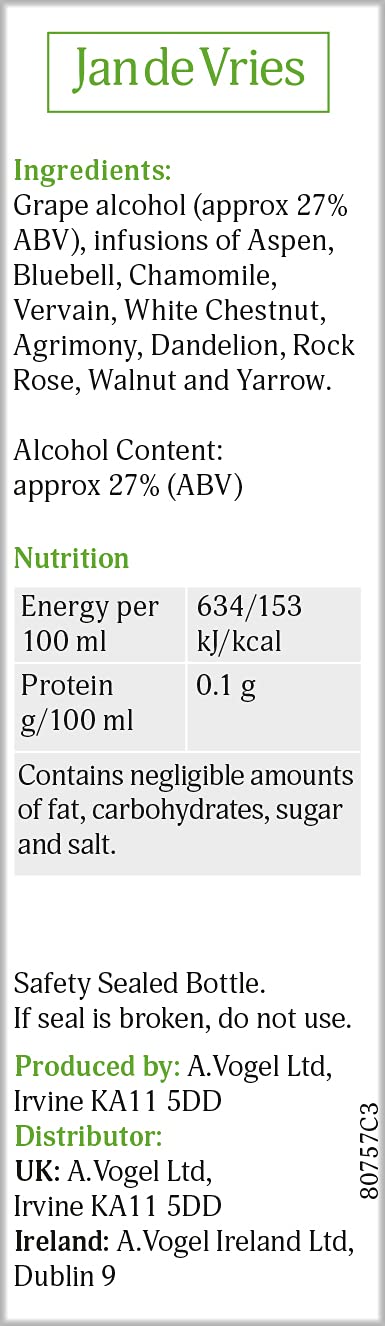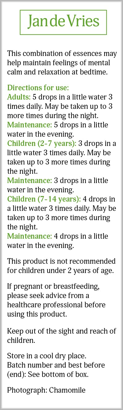 Jan De Vries Night Essence | Promote Better Sleep | Flower Essence | Quieten an Over-stimulated Mind | Contains Chamomile, Aspen & Bluebell | 30ml