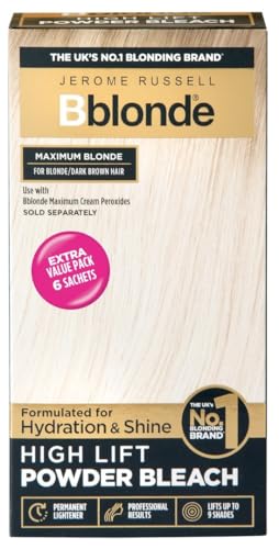 Jerome Russell Bblonde High Lift Bleach Powder - Hair Bleach for Blonde to Dark Brown Hair Colour with Mineral Oils for Hair Care, Blonde Hair Dye Lifts 6-9 Shades, Pack of 6 Sachets inside (6 X 25g)