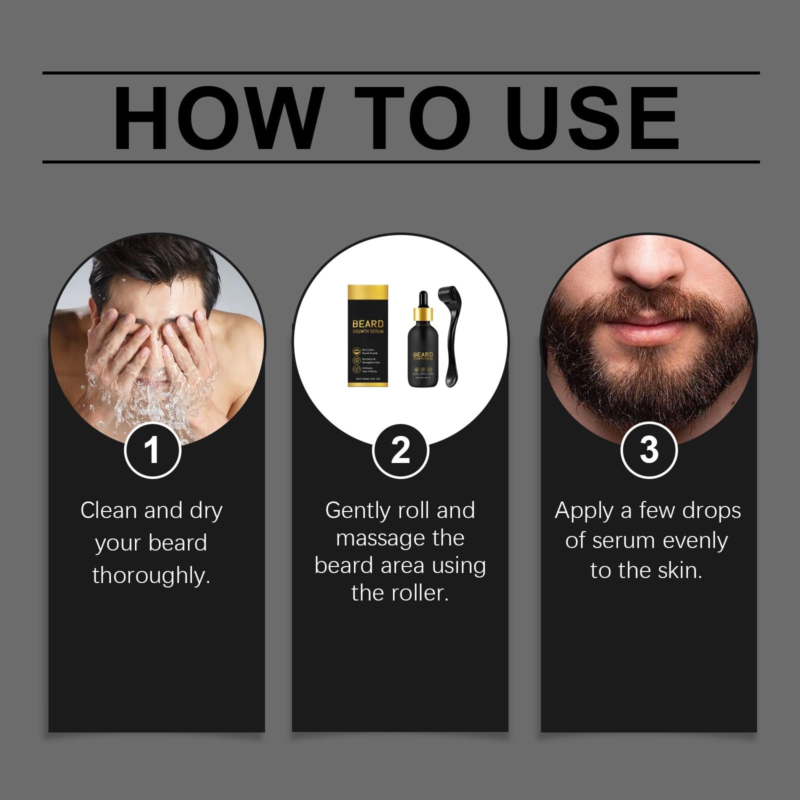 4.Keep using our mens beard growth 1-2 times a day for 4-8 weeks for a thicker,healthier beard. Use this beard stimulator for growth simple steps,easy to raise the ideal Hu shape!