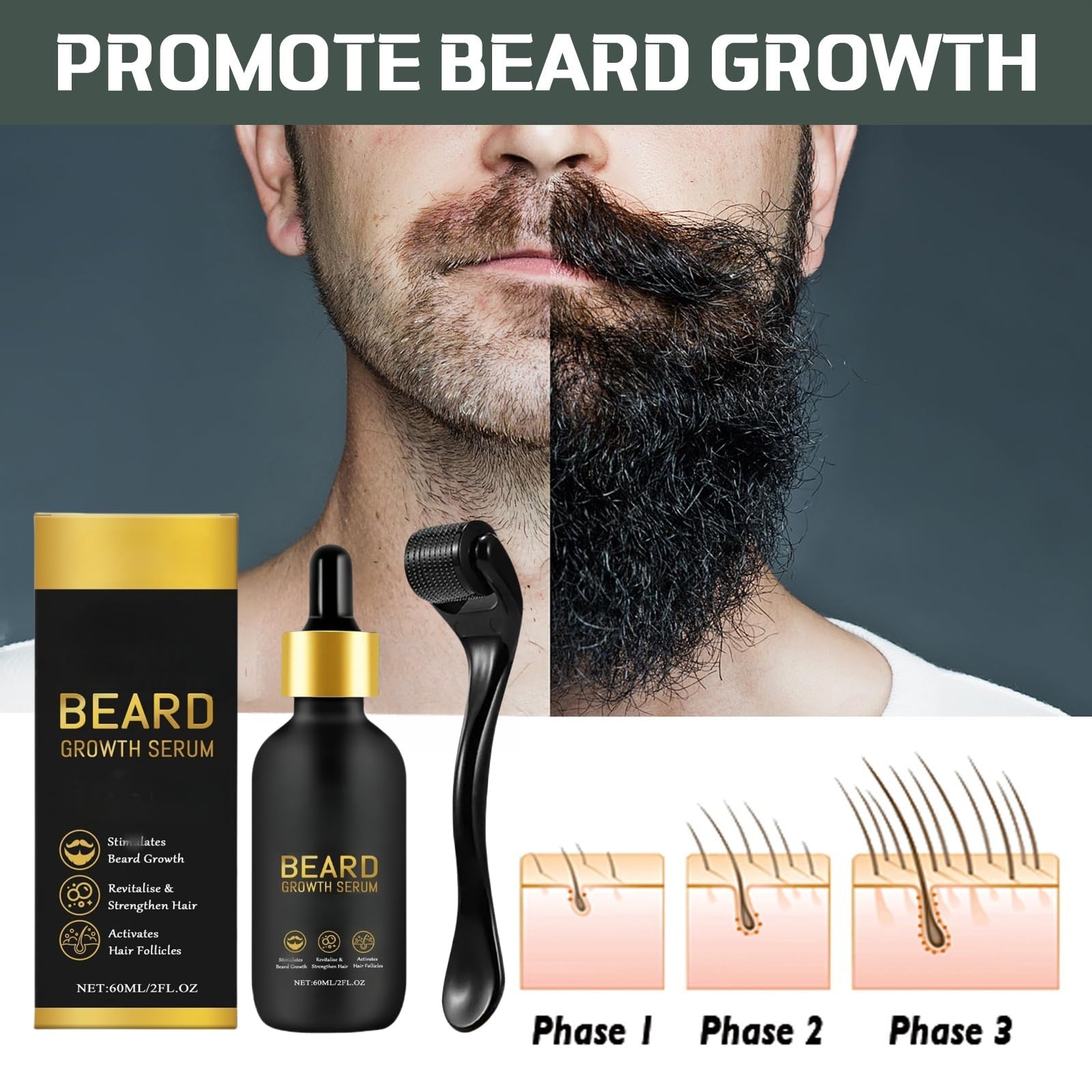 Jinjiar Beard Growth Kit,Beard Growth Oil with Roller for Promote Hair Regrowth,Natural Ingredients Beard Growth Serum,Beard Growth Serum for Men,Acial Hair Treatment,Beard Thickener for Men,Mens Beard Growth