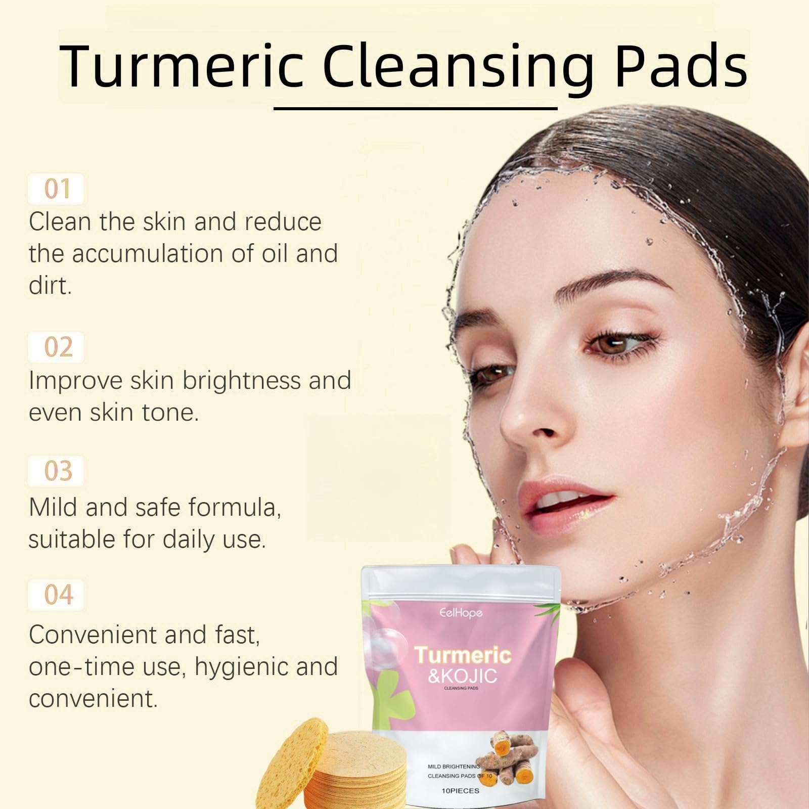 Jinjiar Turmeric Kojic Acid Cleansing Pads,Face Cleansing Pads,10pcs Turmeric Exfoliating Foaming Pads,Exfoliating Face Pads,Resurfacing Pads for Face & Body,Facial Sponges for Cleansing,Acne Face Wipes