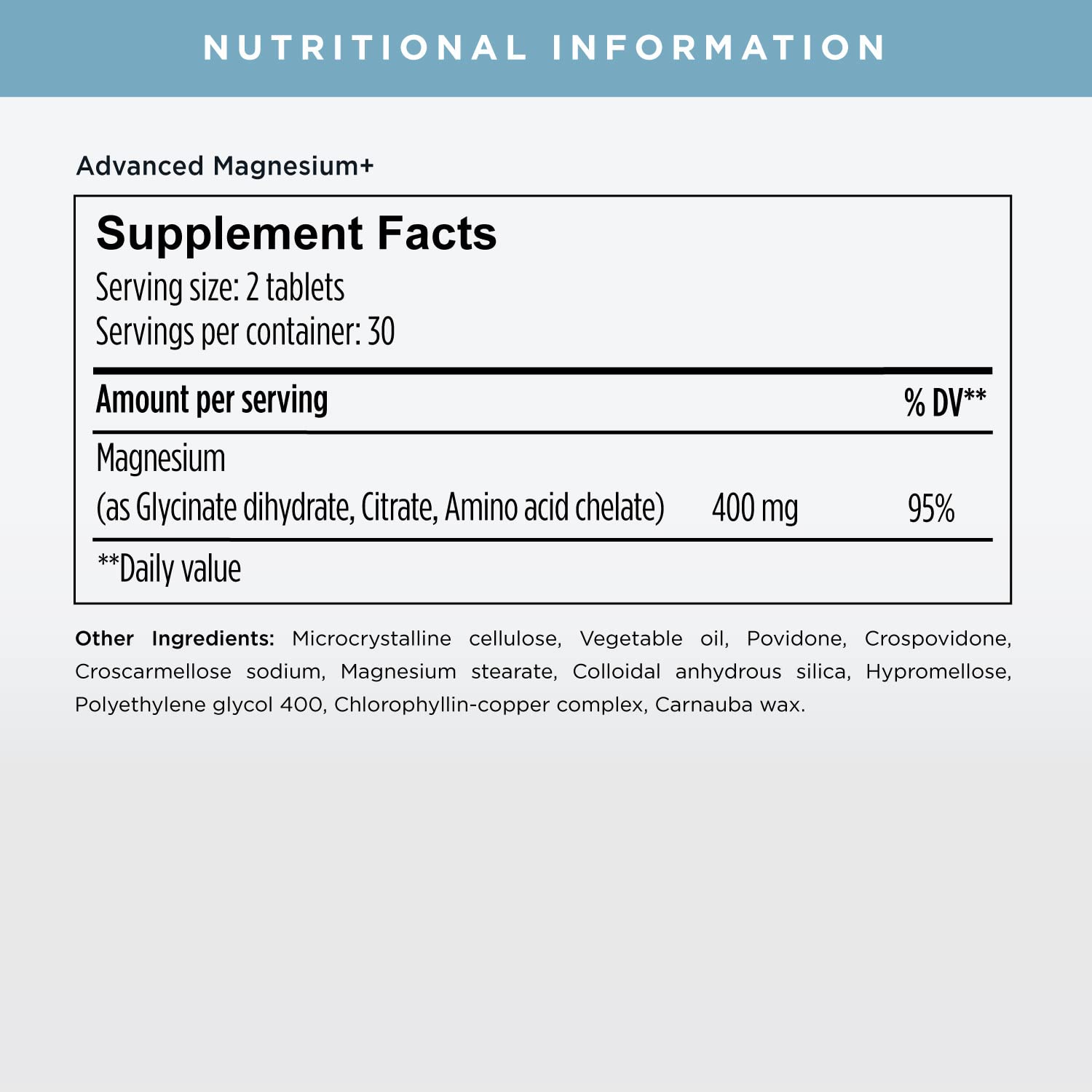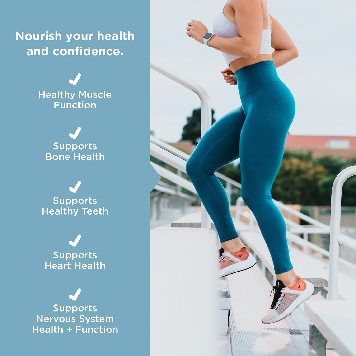 Magnesium + contains three forms of Magnesium. Magnesium relieves and helps reduce the occurrence of muscle cramps when dietary intake is inadequate. It supports muscle relaxation, function, and healthy muscle contraction. Magnesium supports nervous system health and function, heart and bone health, bone density, and healthy teeth. It assists sugar and carbohydrate metabolism, protein synthesis in the body, and healthy bone development and growth.