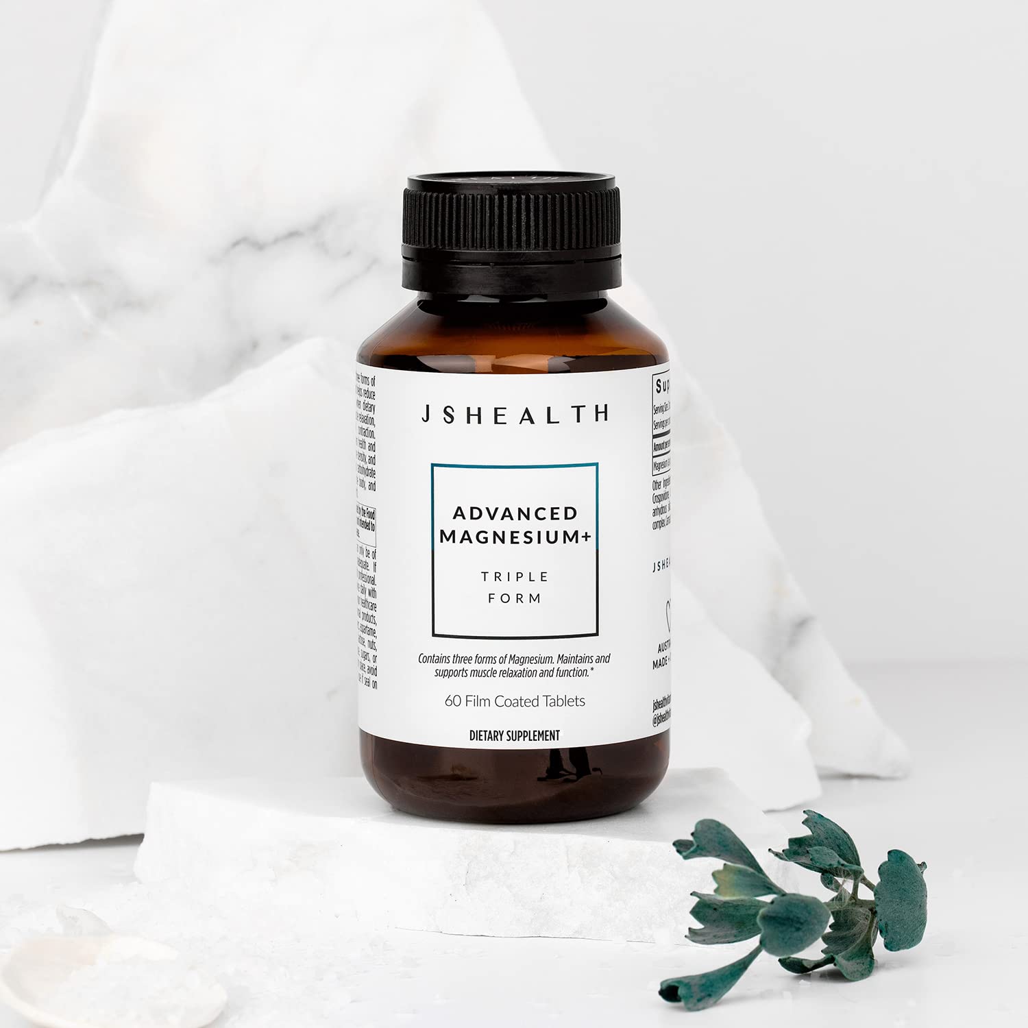 JSHealth Vitamins Advanced Magnesium Supplements with Magnesium Glycinate & Citrate for Muscle Relaxation (60 Tablets)