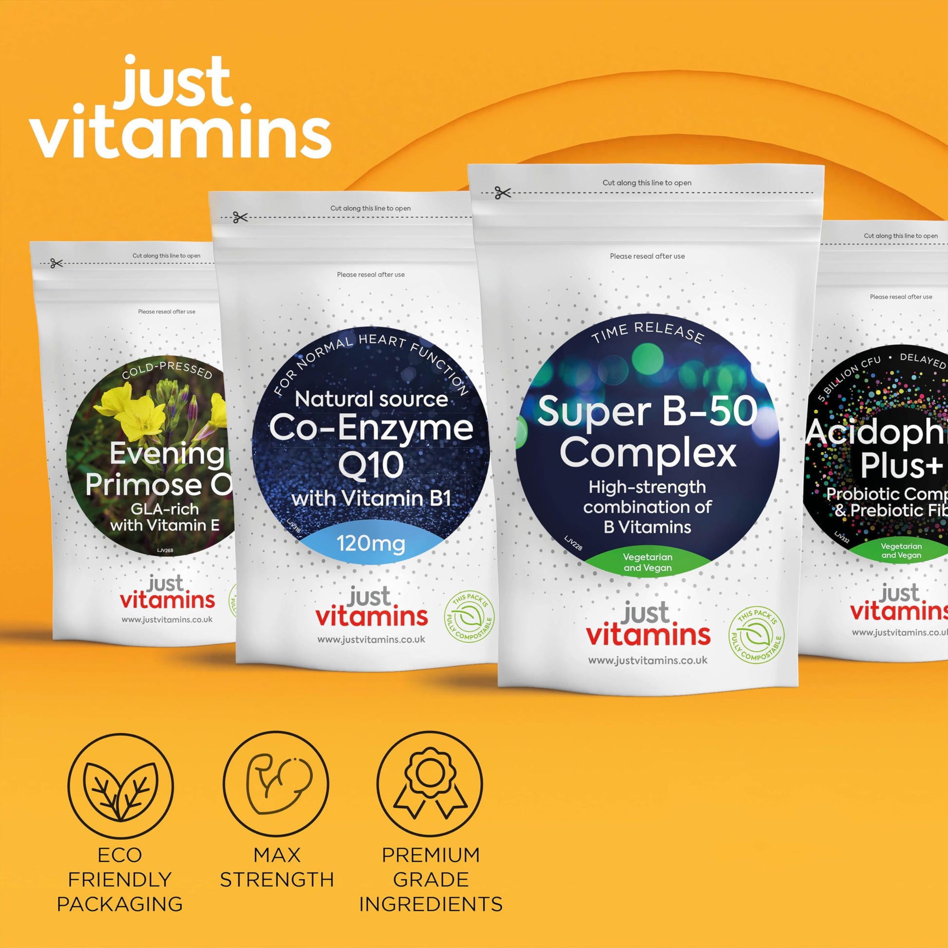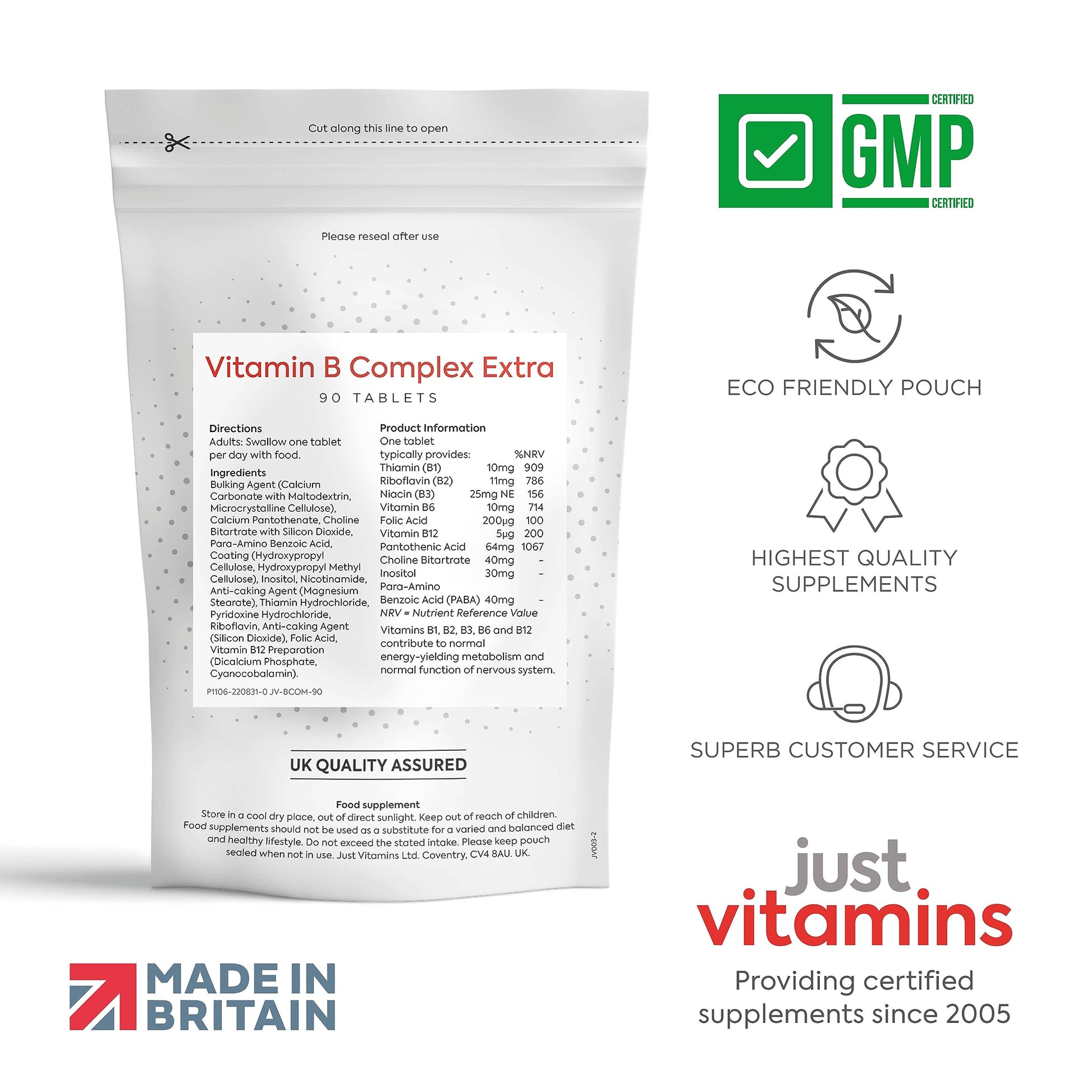 Just Vitamins Super Vitamin B-50 Complex | x90 High Strength Tablets Containing All 8 B Vitamins - VIT B1 Thiamine, B2, B3 Niacin, B5, B6, B7 Biotin, Inositol, B9 Folic Acid & B12. UK Made from Non Yeast Source