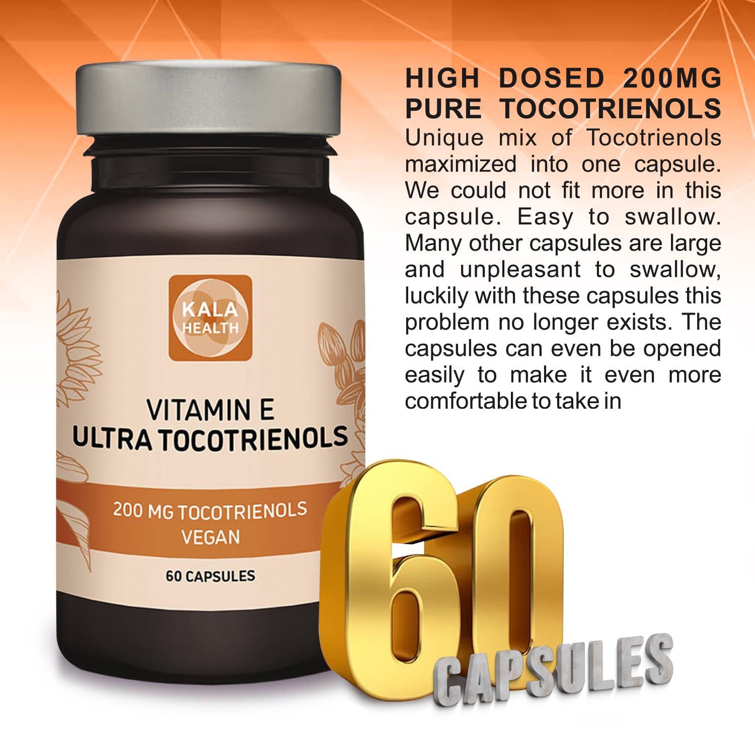 Kala Health Ultra Tocotrienol 200mg Vitamin E Vegan – All 4 tocotrienols - Alpha Tocotrienol + Beta Tocotrienol + Gamma Tocotrienol + Delta Tocotrienol – No Tocopherols - Unique Tocotrienol Complex