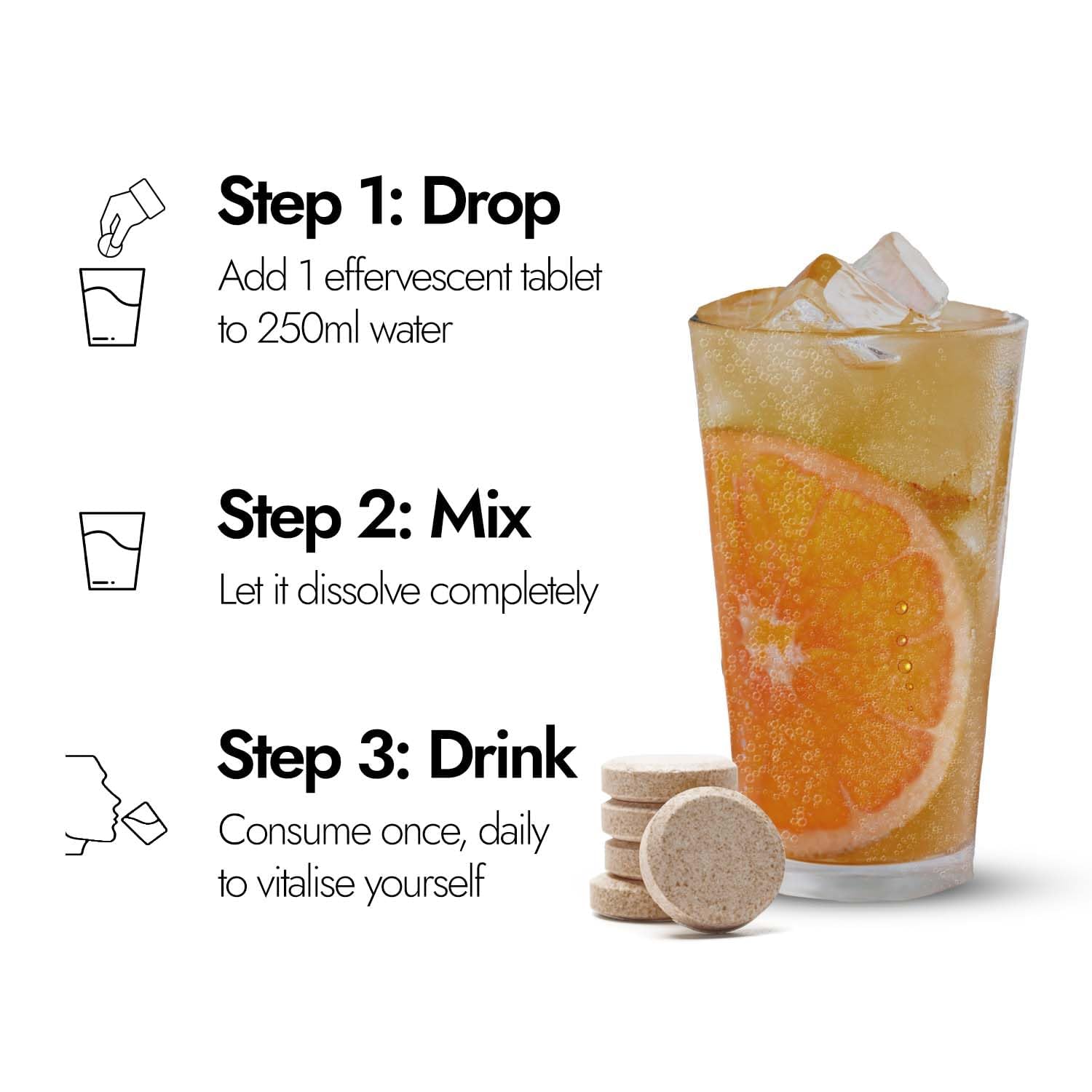 "Improved Overall Wellbeing: With the presence of pure shilajit and other powerful Ayurvedic ingredients. Experience improved strength, stamina, energy levels and immunity. Your Go-to Energy Drink: Gives you a sustainable boost of energy irrespective of the season in a refreshing orange flavour, that is convenient to carry and consume anywhere. For Best Results: Consume 1 tablet daily, and combine this with a balanced diet & exercise."More Info