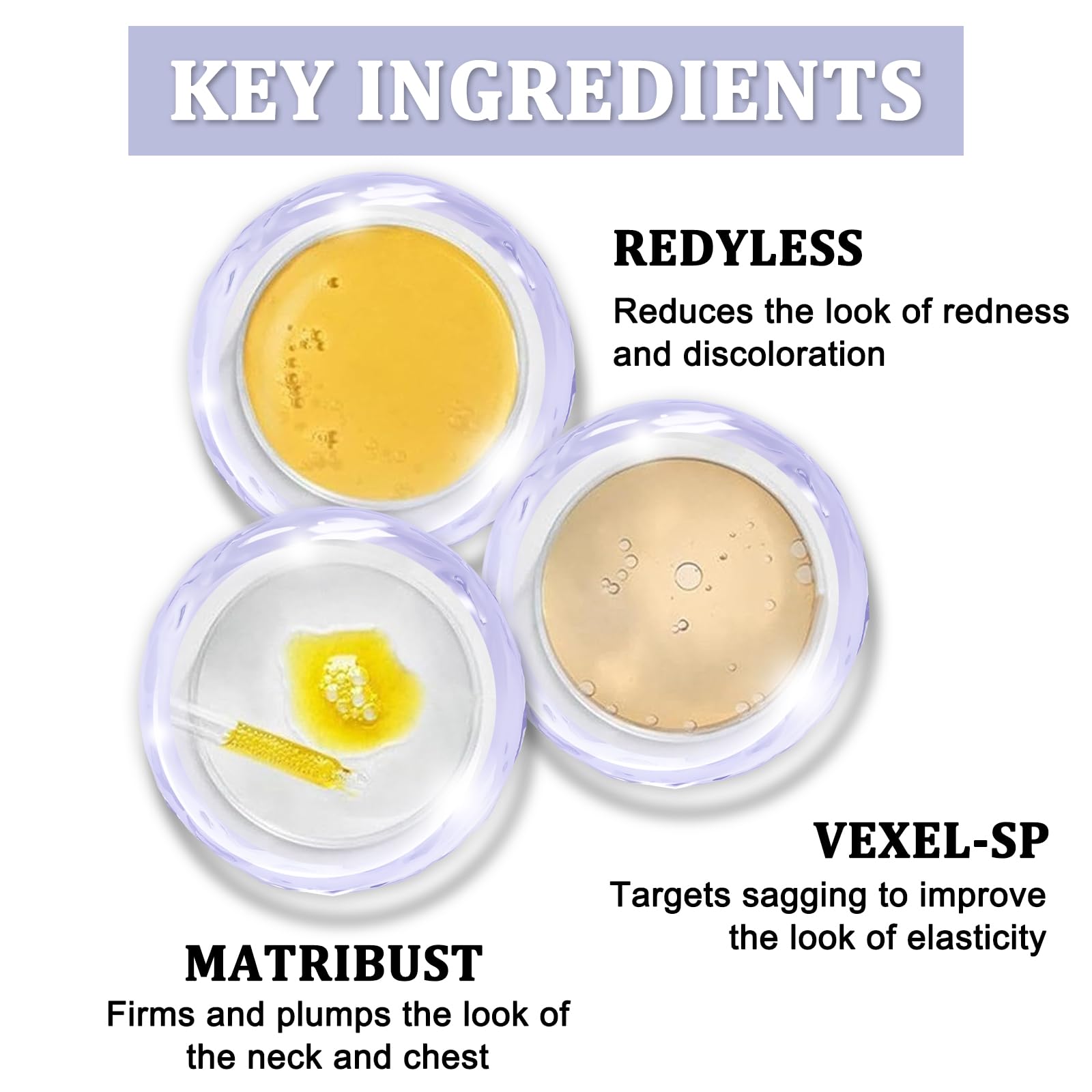 Our neck tightening cream helps to moisturize smooth and delicate skin, improving the firmness of the neck skin.