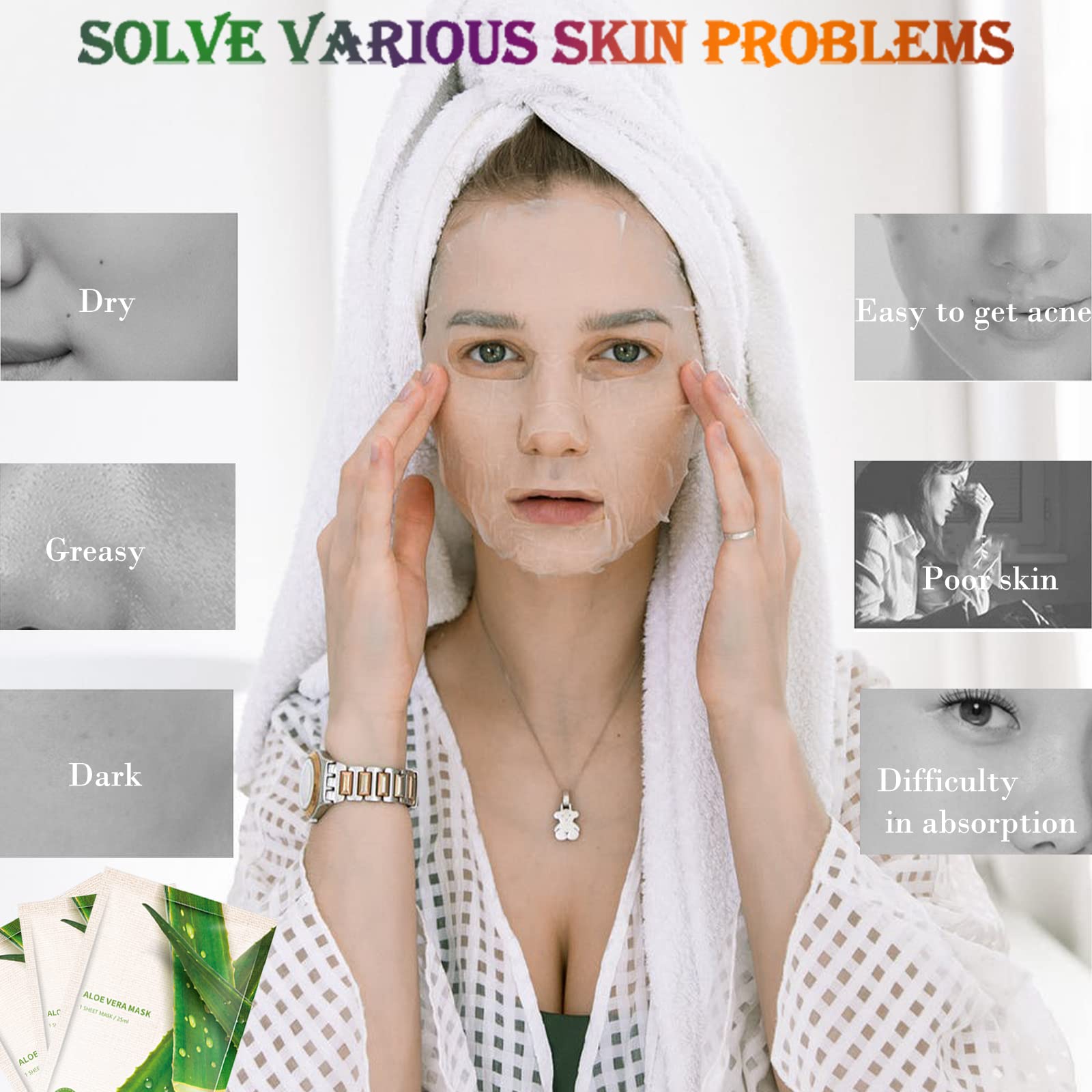 🌸Rich in aloe essence and hyaluronic acid aloe masks aim to nourish skin, relieve rough and tight feeling, improve skin color and make skin glow with youthful brilliance and help to restore the natural elasticity and vitality of the skin.