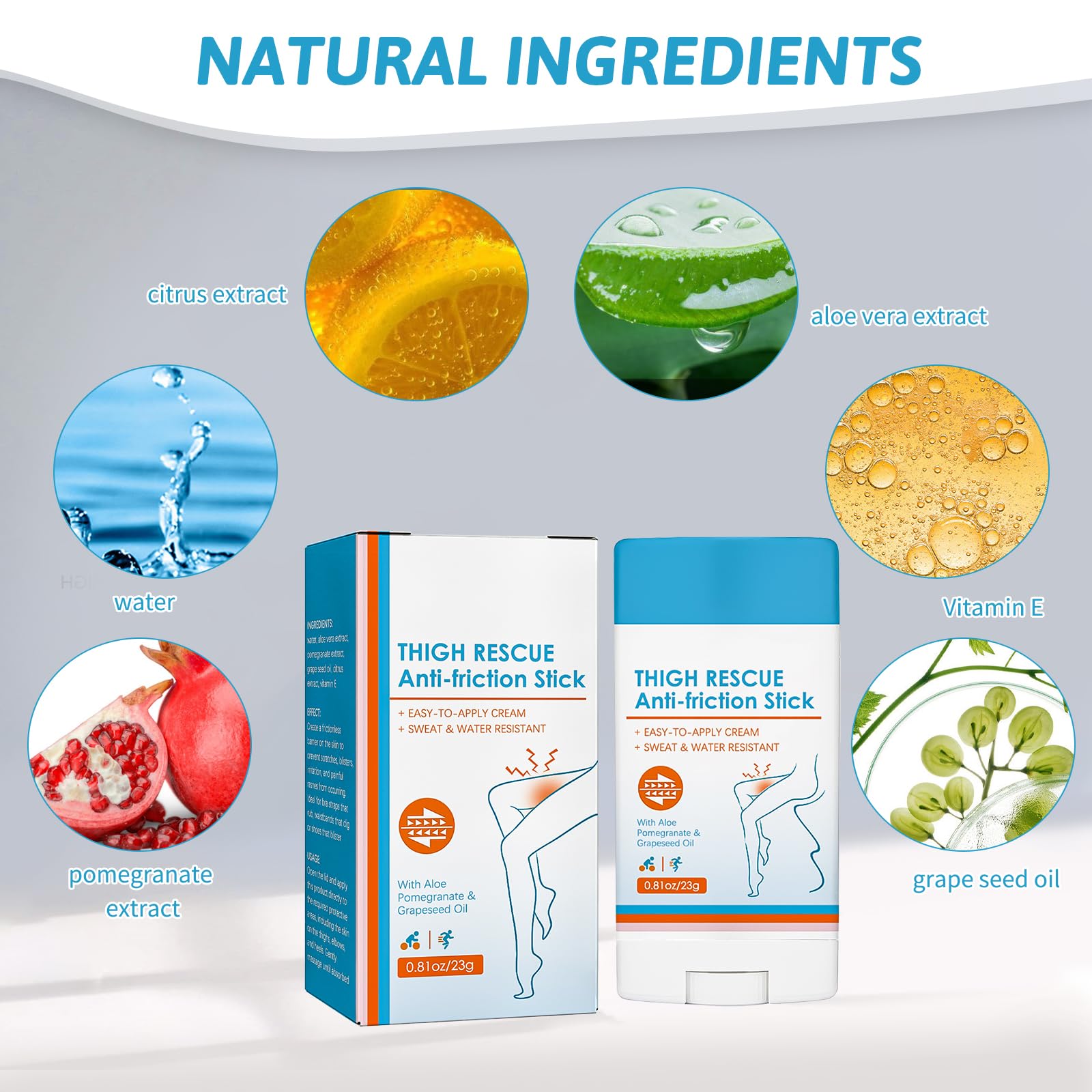 - Enriched with natural ingredients like aloe veras, honey, and tea tree oil, this Anti Chafe Stick acts as an invisible barrier that significantly reduces friction and chafing. Regardless of the cause - be it bra straps, belts, shoes, or physical exertion, our chafing stick is designed to prevent abrasions and skin irritation.