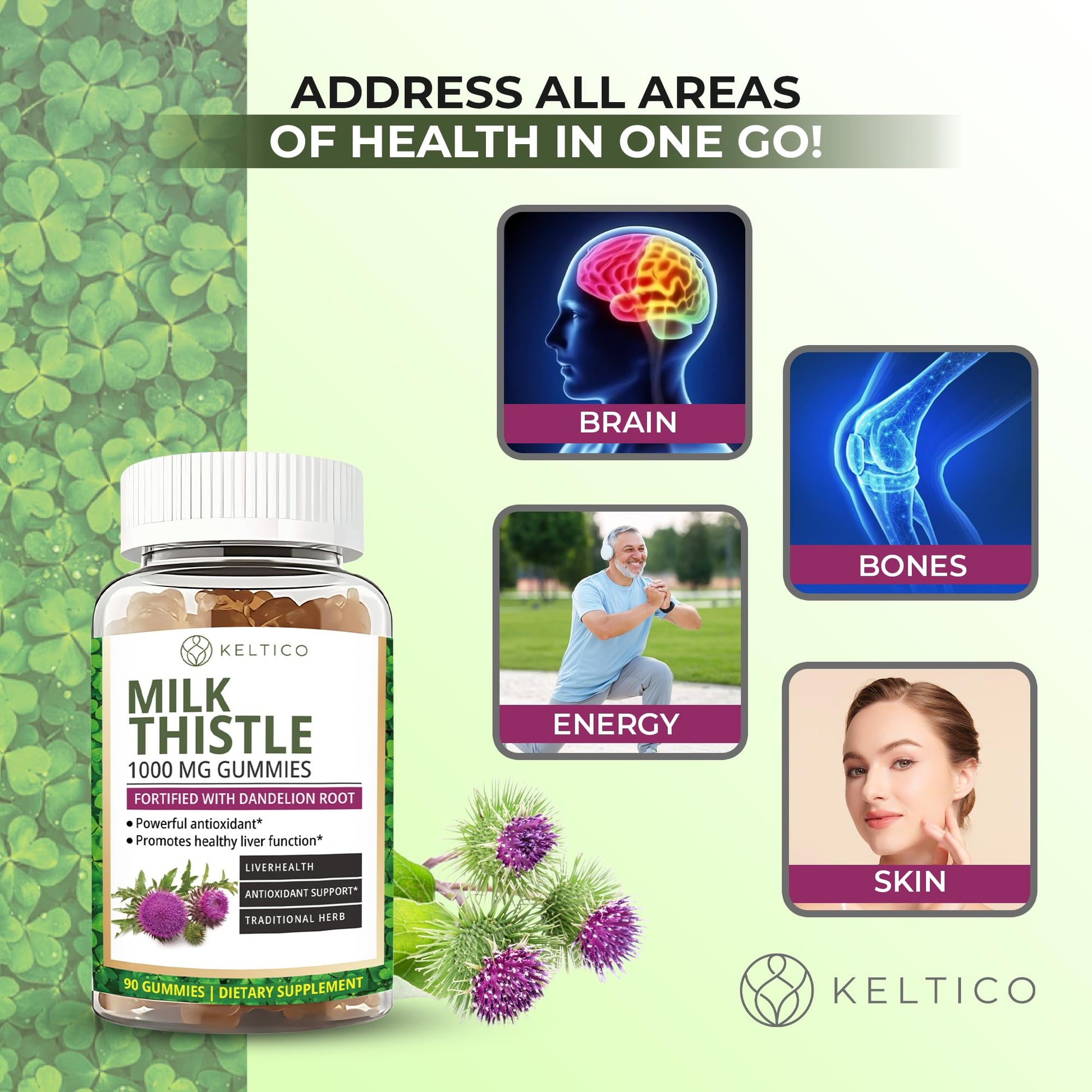 Keltico Milk Thistle Gummies 1000mg – Fortified with Dandelion Root – Liver Support & Detox Supplement – Vegan, Gluten-Free – Antioxidant Support - 90-Day Supply - Liver Health - Cleanse