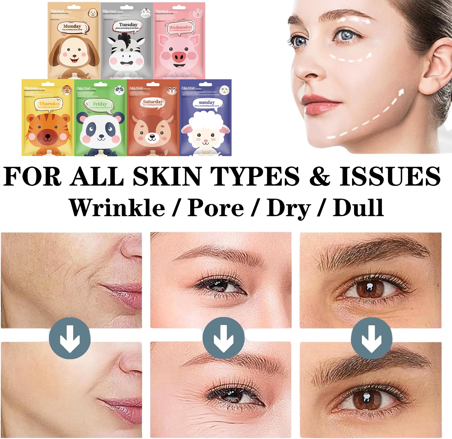 Each mask features a playful animal print, adding a touch of fun to your skincare routine. A great choice to enjoy together with friends, family, or kids — perfect for playful moments and photo fun. Use a different animal design each day and enjoy a delightful skincare experience that lifts your mood.How to Use
