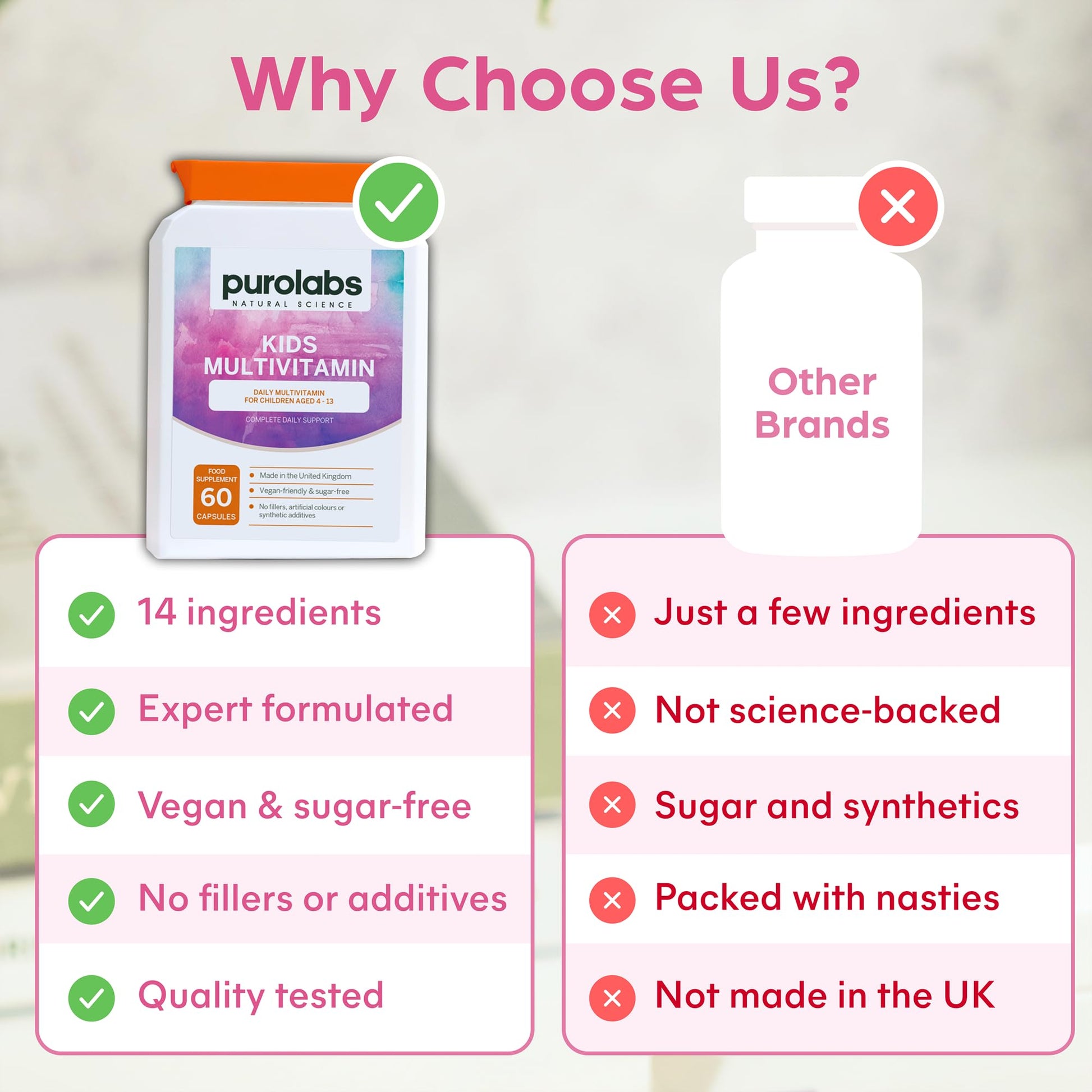 MADE WITH CARE IN THE UK - Our Kids Multivitamin is proudly made in the UK, adhering to the highest quality and safety standards. We use the finest ingredients and follow strict manufacturing processes, ensuring freshness and potency in every capsule.