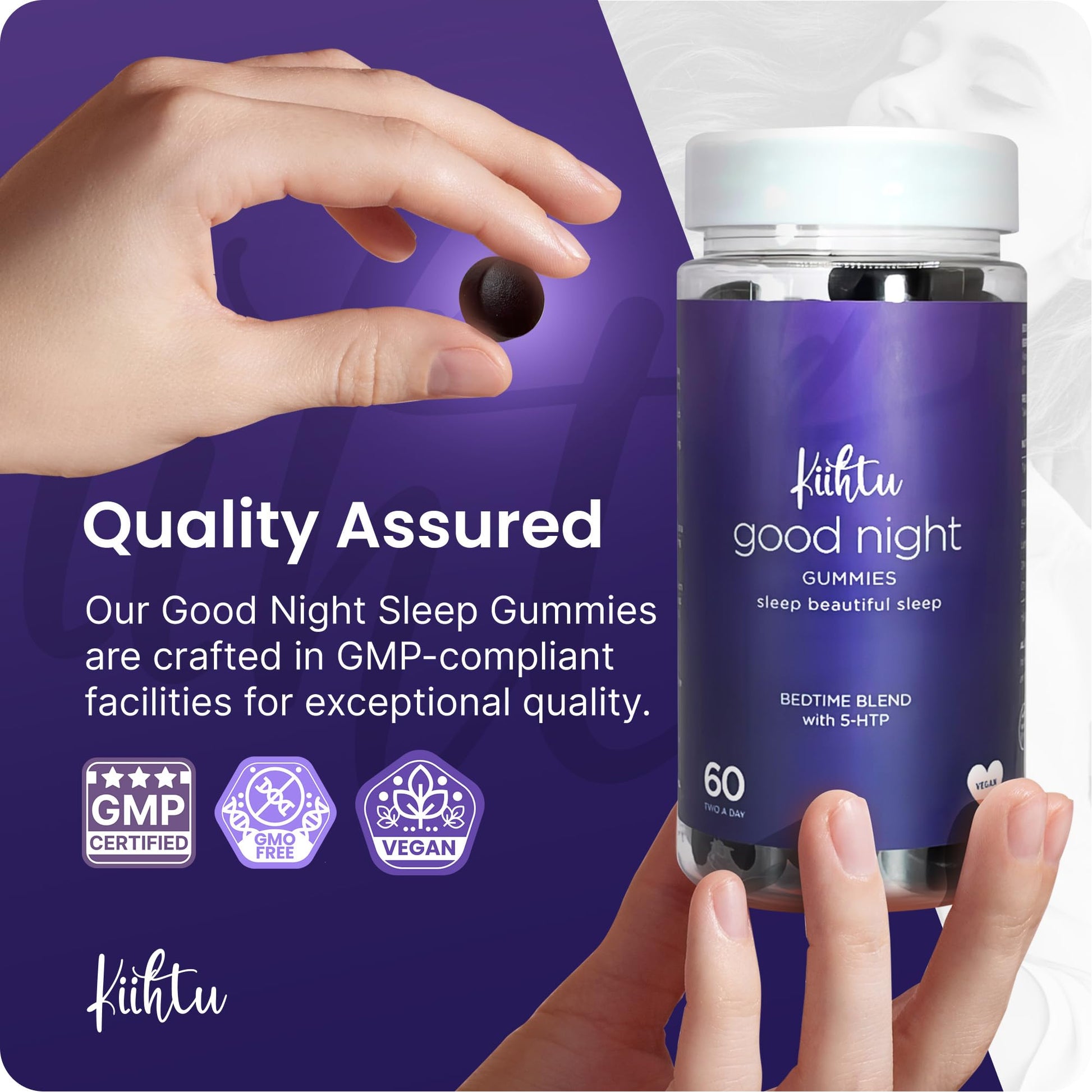 Kiihtu 5HTP Good Night Sleep Gummies - 60 Count | 1 Month Supply Chewable Griffonia Extract, Chamomile & Lemon Balm Bedtime Gummies | Calm Sleep Support | Natural & Vegan | Berry Flavour