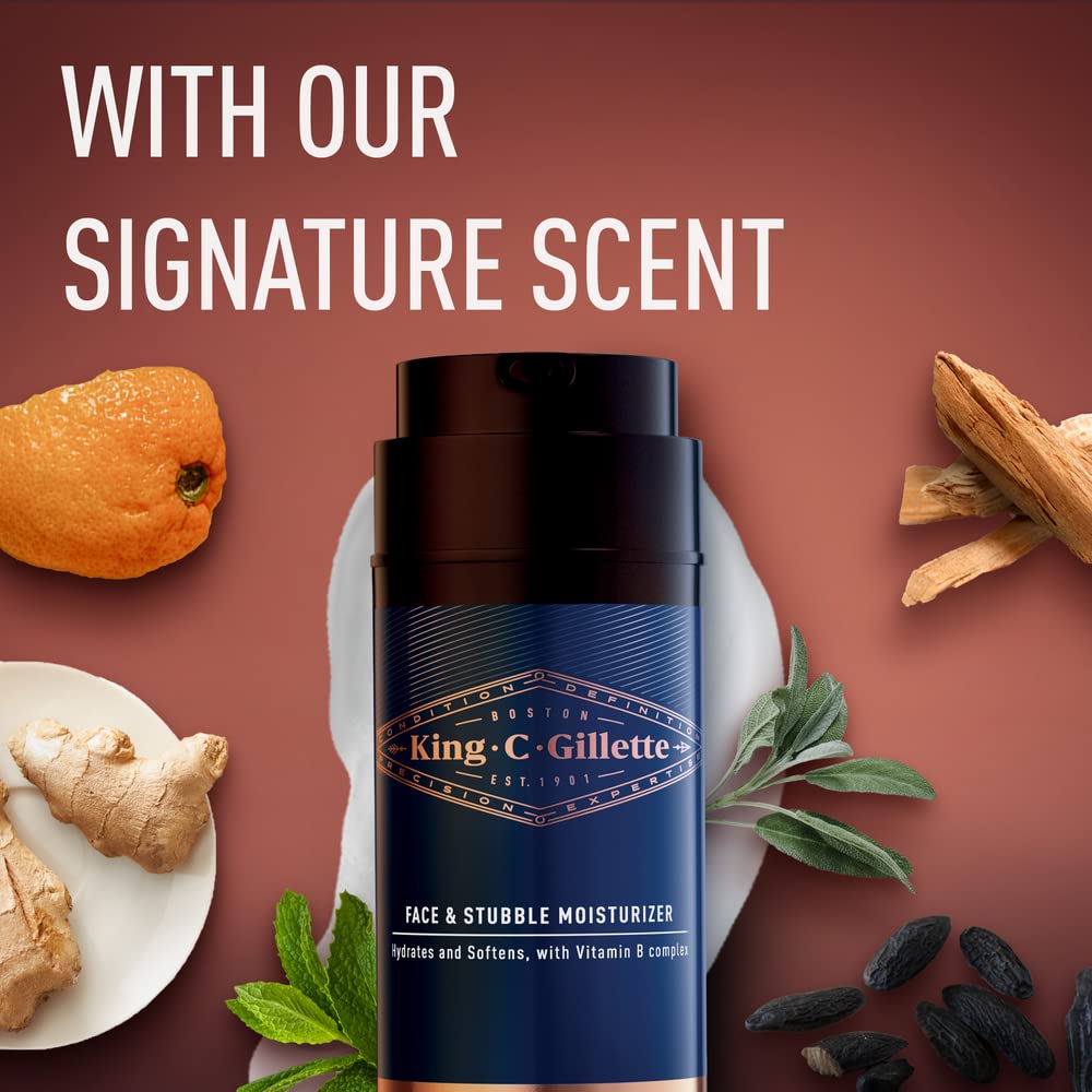 King C. Gillette Face & Beard Moisturiser for Men, 100 ml, with Vitamin B (B3), B5 Complex & Argan Oil, Beard Softener for Men