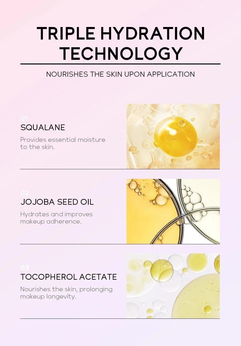 ● It makes the skin tone even, while any imperfections and discolorations invisible.