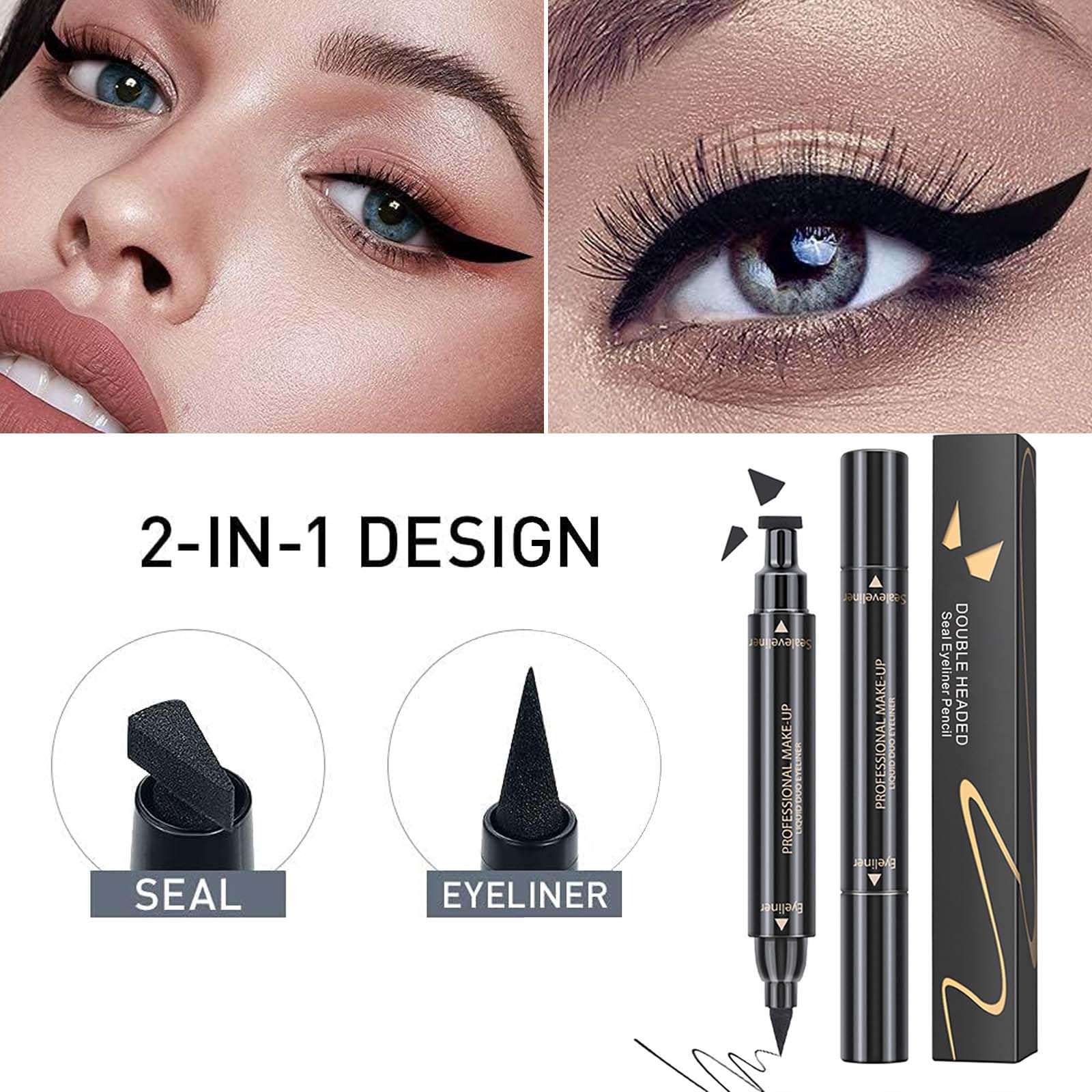 Smudge-Proof Winged Eyeliner Stamp & Pen for Women - Long-Lasting Black Liquid Eye Liner