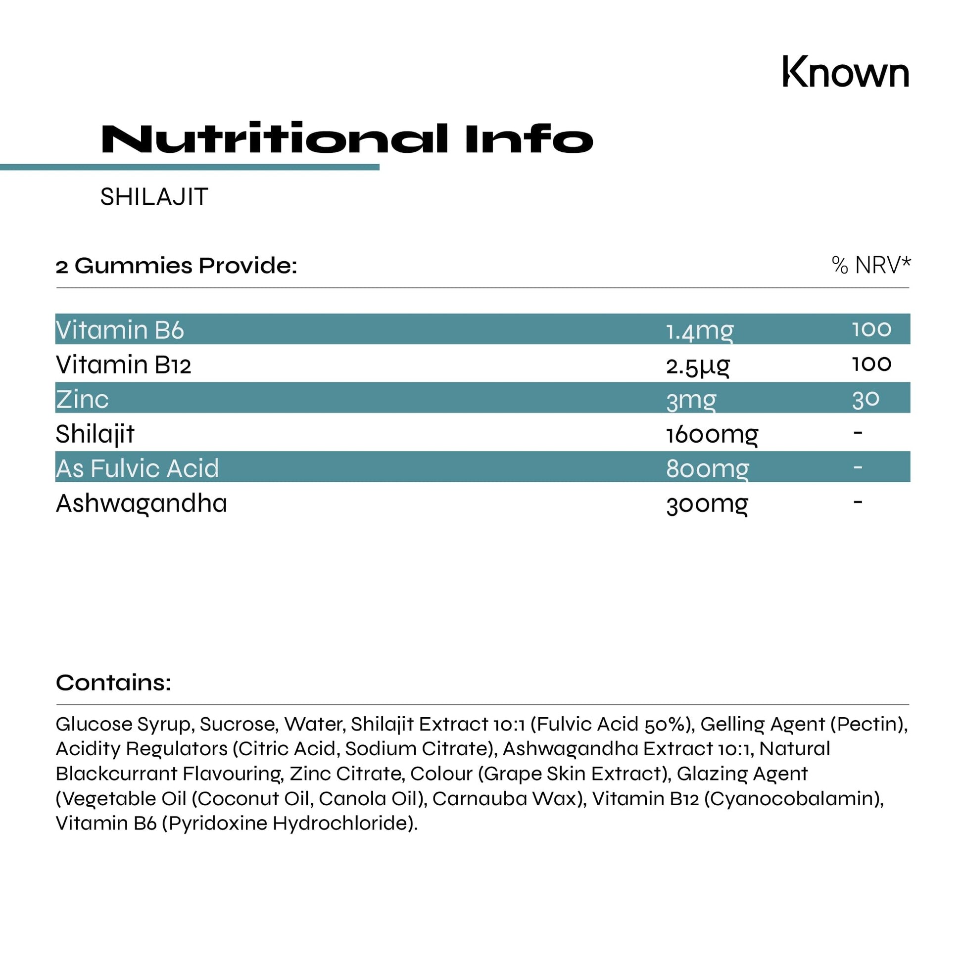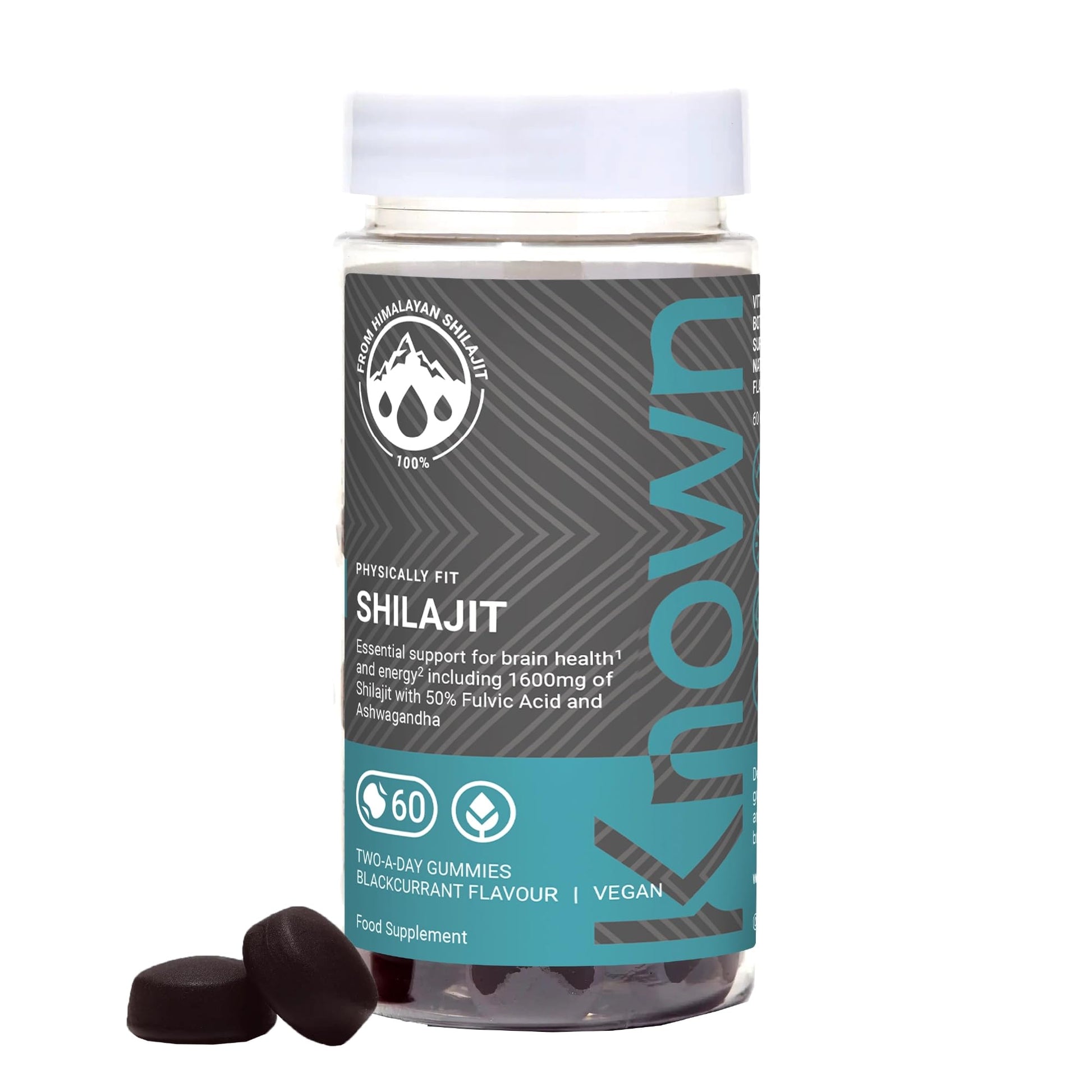 Known - 1600 mg Himalayan Shilajit Gummies with Ashwagandha - 60 x Two-A-Day Blackcurrant Flavour - 50% Fulvic Acid - Energy, Stress Relief & Immune Support - Adaptogenic - Vegan/Halal