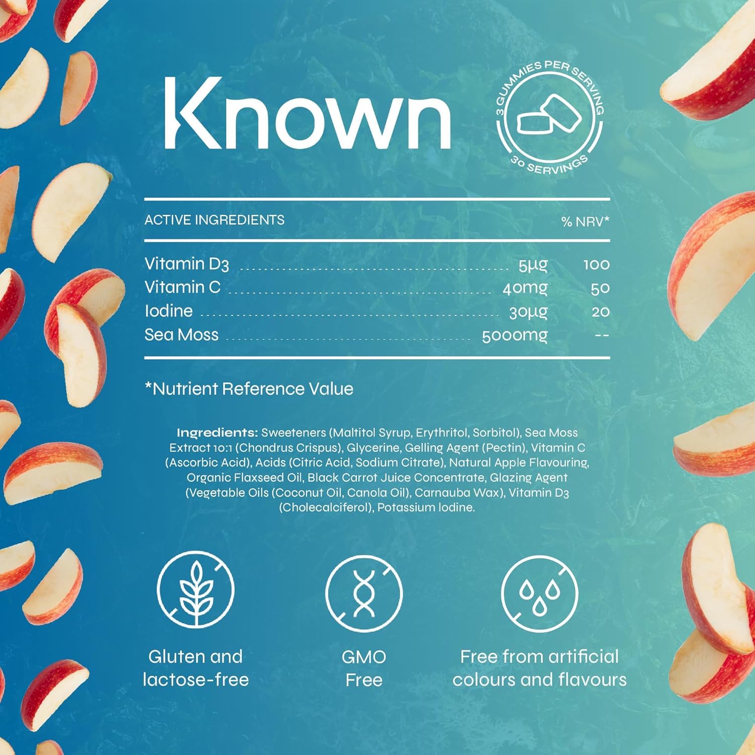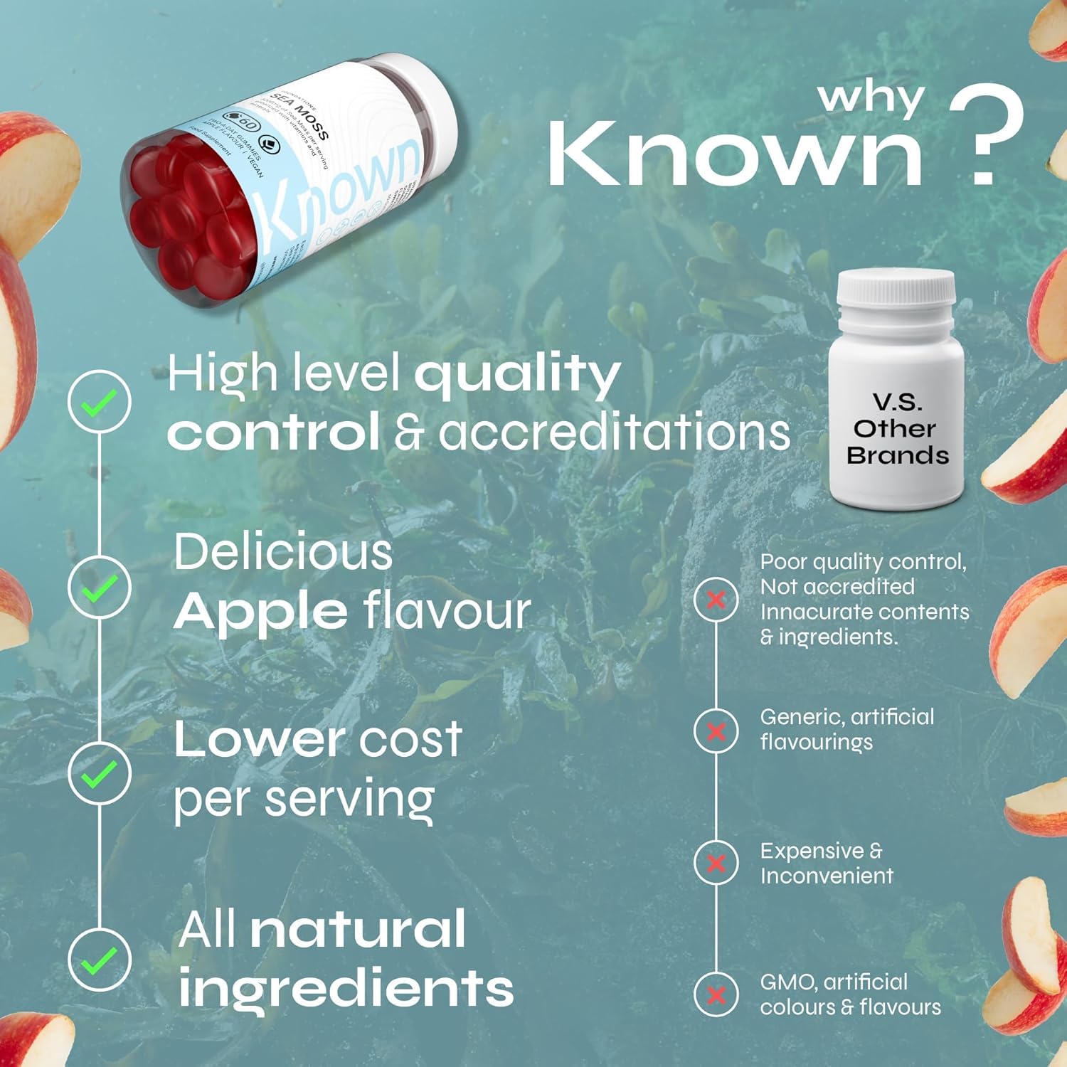 Known Tasty Sea Moss Gummies - 5000mg Sea Moss, Vitamin C, Iodine - Supports Immunity - Natural Apple Flavour - 60 Vegan Gummies, 2 Months Supply