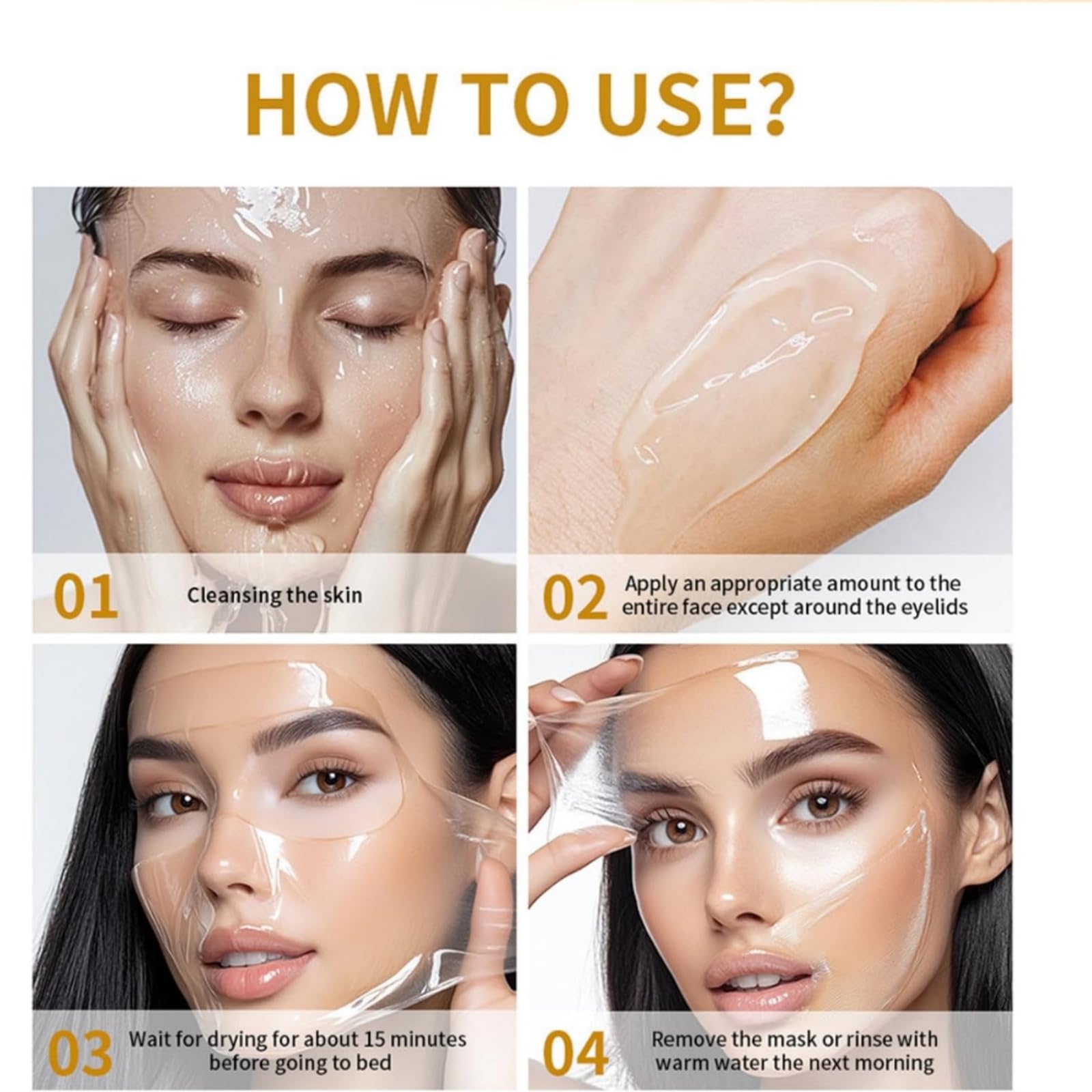 4.Peel&rinse:Gently remove in the morning,then splash with water for glass-like skin.