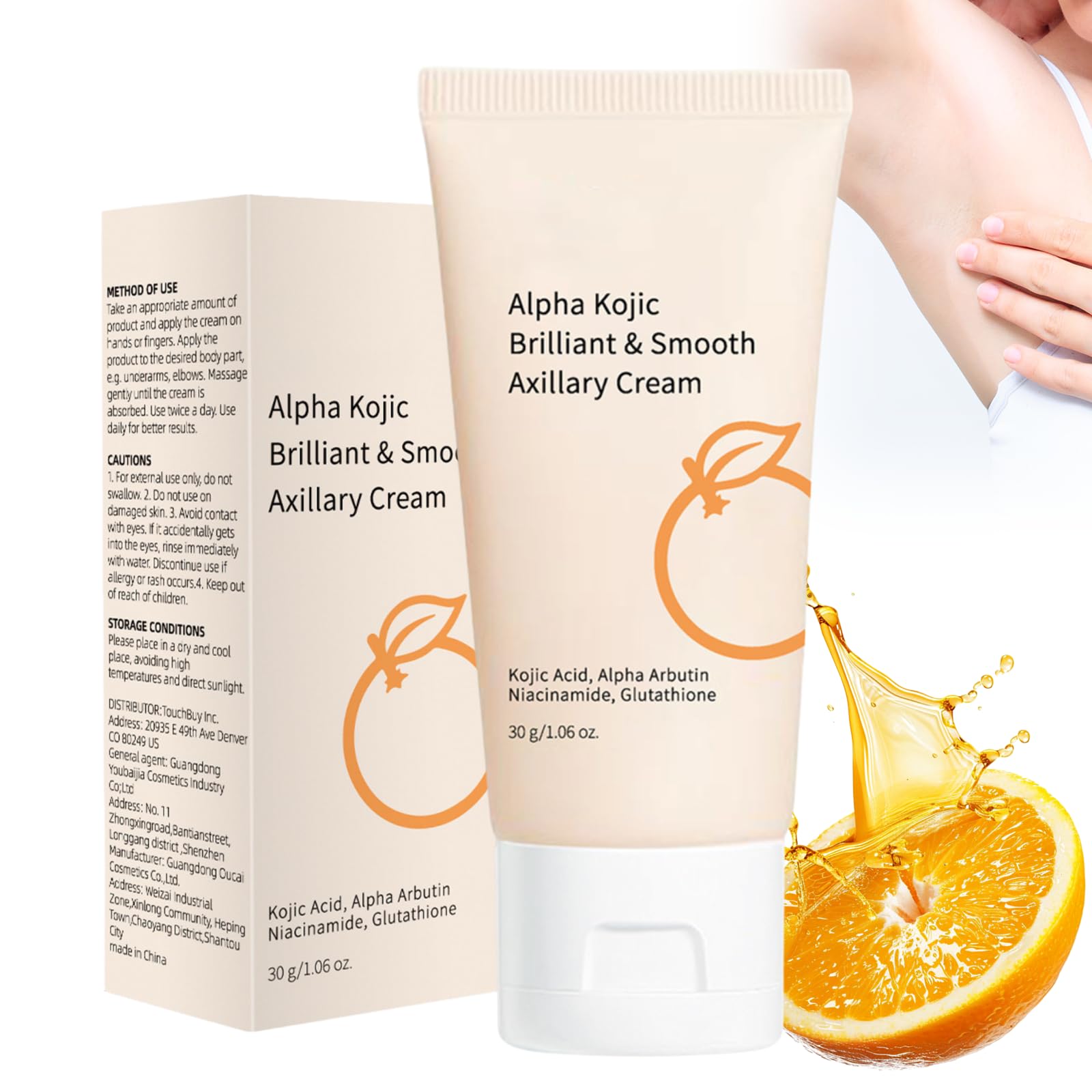 Achieve radiant, even-toned skin with our Kojic Acid Brightening Cream, a multi-action formula designed to tackle dark underarms, knees, elbows, and intimate areas. Enriched with Kojic Acid, Alpha Arbutin, Niacinamide, and Glutathione, this cream effectively reduces melanin production, fades dark spots, and brightens skin tone. Whether you're targeting underarms, inner thighs, this lightweight, non-greasy formula delivers deep hydration, repairs damaged skin, and leaves your skin smooth, glowing, and revitalised. Suitable for all skin types, including sensitive skin, it’s your go-to solution for a brighter, more confident you.