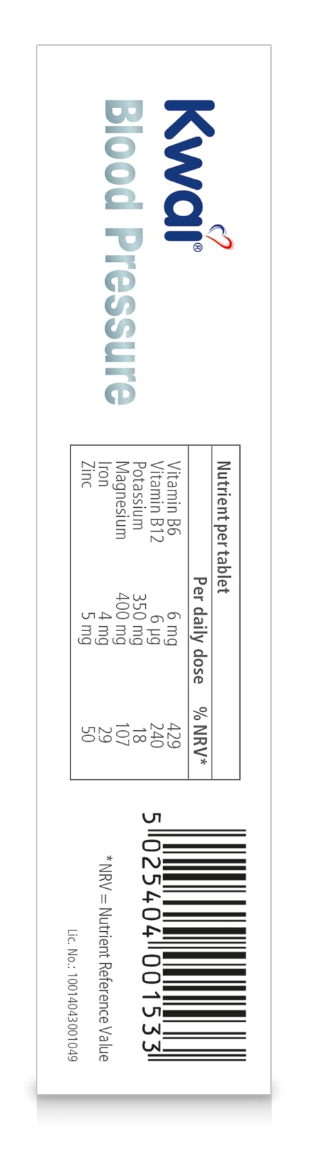 Kwai Blood Pressure tablets At the heart of a healthy life is a healthy heart At Kwai we believe life is for living. Kwai Blood Pressure At the heart of a healthy life is a healthy heart At Kwai we believe life is for living. Seizing the moment and trying something new is all about a positive attitude and not being defined by age. Kwai Blood Pressure is a supplement specifically developed to help maintain normal blood pressure and healthy muscle function (incl heart). Together with a healthy, balanced diet and healthy lifestyle, you less to worry when you check your blood pressure with blood pressure monitor, or blood pressure machine. Each tablet contains a high dose of Magnesium, a mineral substance necessary for life and required for the maintenance of normal muscle contraction, including the heart muscle. In addition, Kwai Blood Pressure delivers Potassium, which plays an important role in maintaining muscle function and contributing to the maintenance of normal blood pressure. Vitamins B6, B12, Iron and Magnesium also contribute to the reduction of tiredness and fatigue. Kwai Blood Pressure is a potassium supplement combined with a magnesium and zinc supplements Potassium supplements helps maintain normal blood pressure Provides Magnesium to help support heart muscle function Vitamins B6, B12 and Iron help reduce tiredness and fatigue, improve energy levels, the formation of red blood cells and homocysteine metabolism Zinc contributes to the normal fatty acids and carbohydrate metabolism, protection of cells from oxidative stress 30 one a day tabletsMore Info