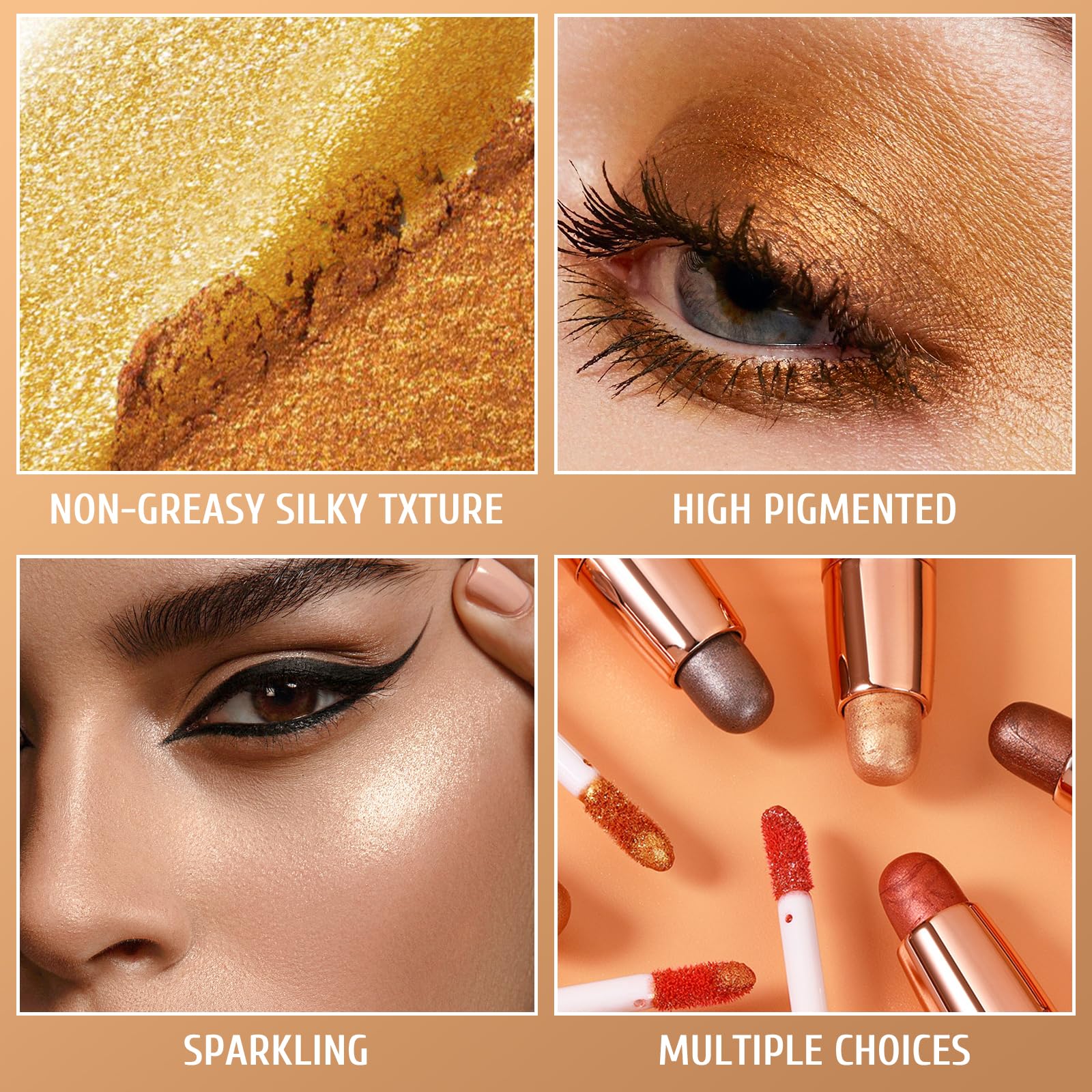 KYDA Dual-Ended Highlighting Eye Shadow Stick, 2-in-1 Liquid Eyeshadow Stick, Crayon Eyeshadow Stick, Long-lasting, Waterproof, Multi-functional Makeup stick, For Eyes, Face, Body-#04
