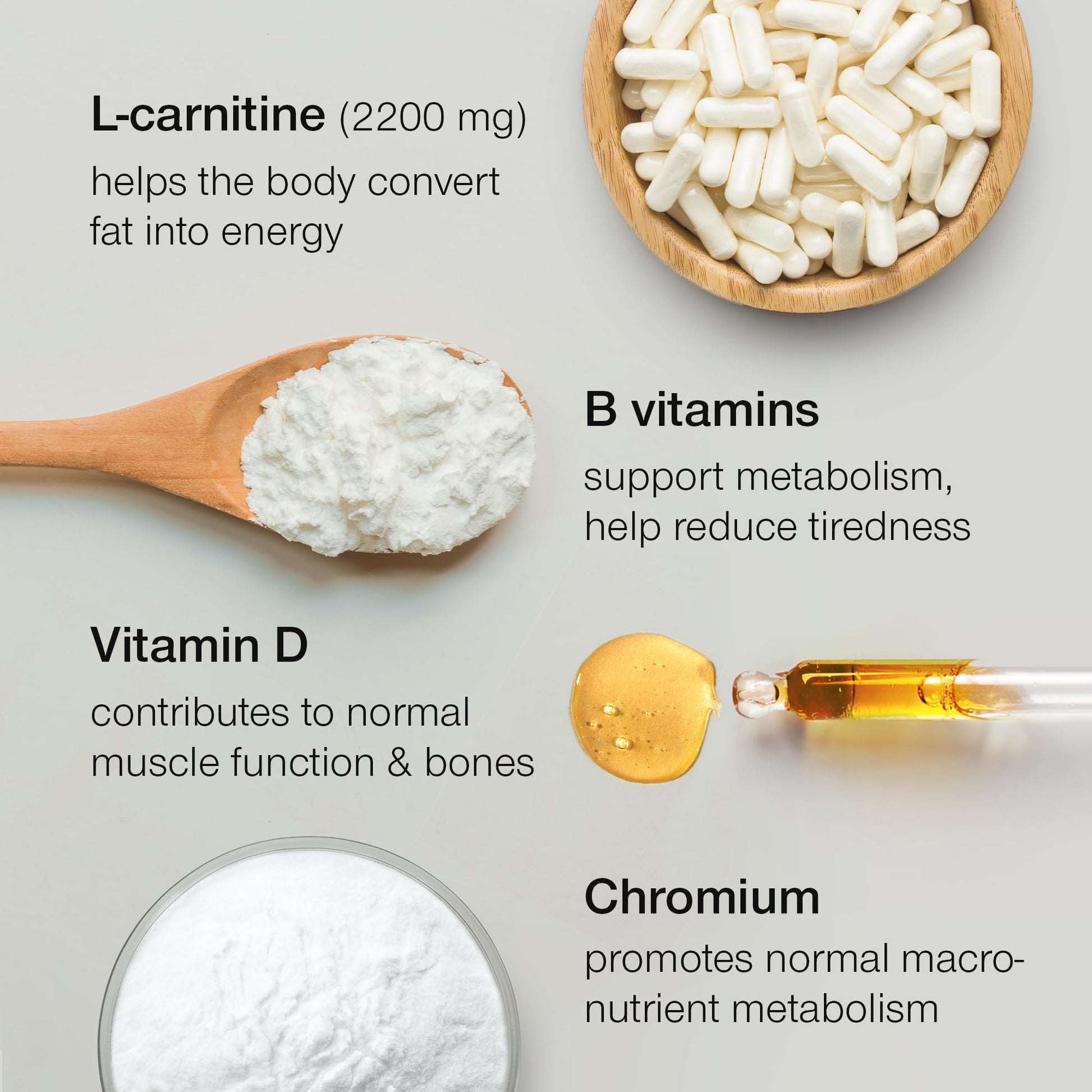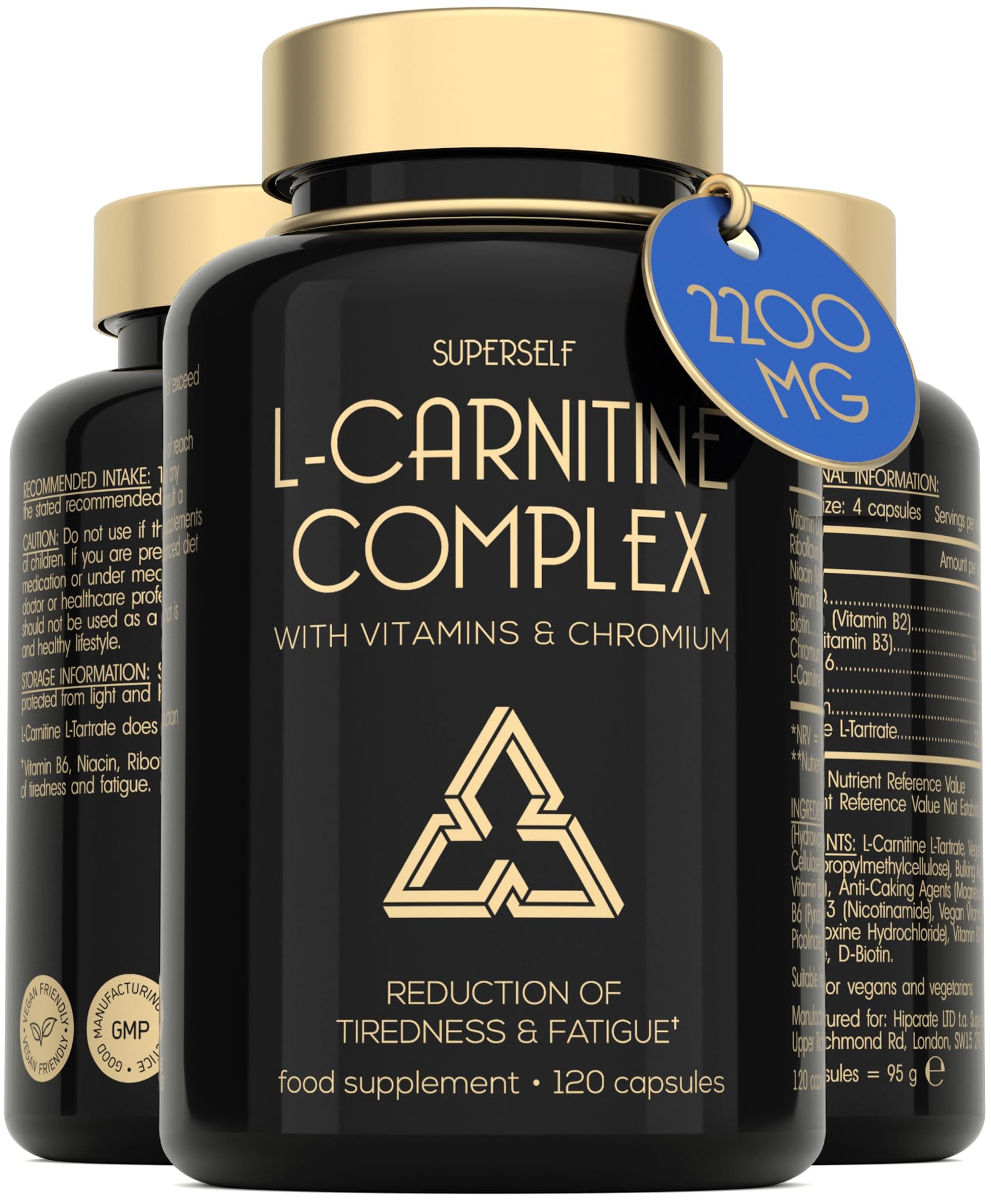 L-Carnitine Capsules 2200mg - L-Carnitine Complex with Vitamins D & B - Reduces Tiredness & Fatigue - Energy & Metabolism Support - 120 Vegan Tablets - High Strength L Carnitine Tartrate Supplement